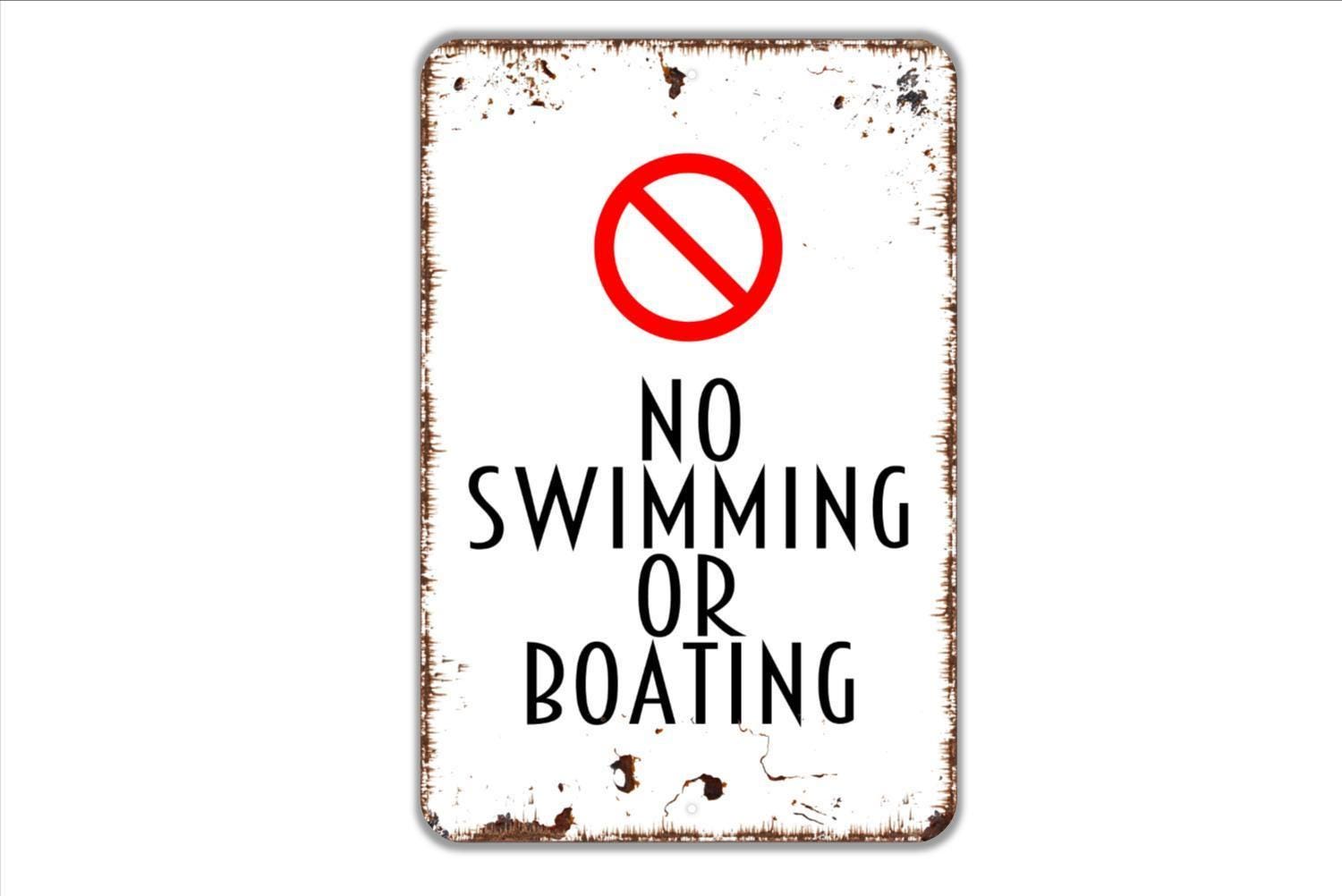 No Swimming Or Boating Sign - Private Lake Pond River No Motorboats Metal Wall Art - Indoor or Outdoor