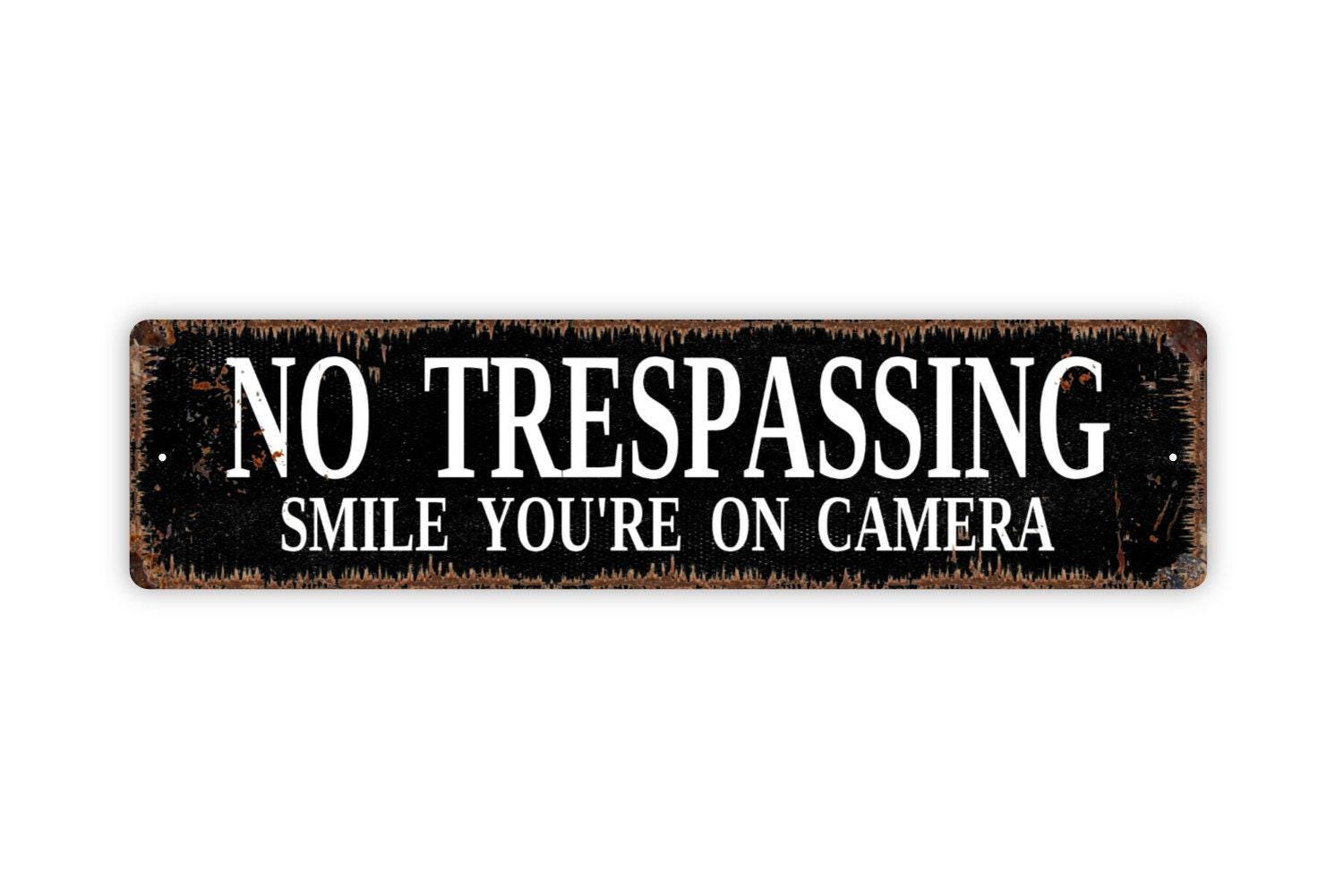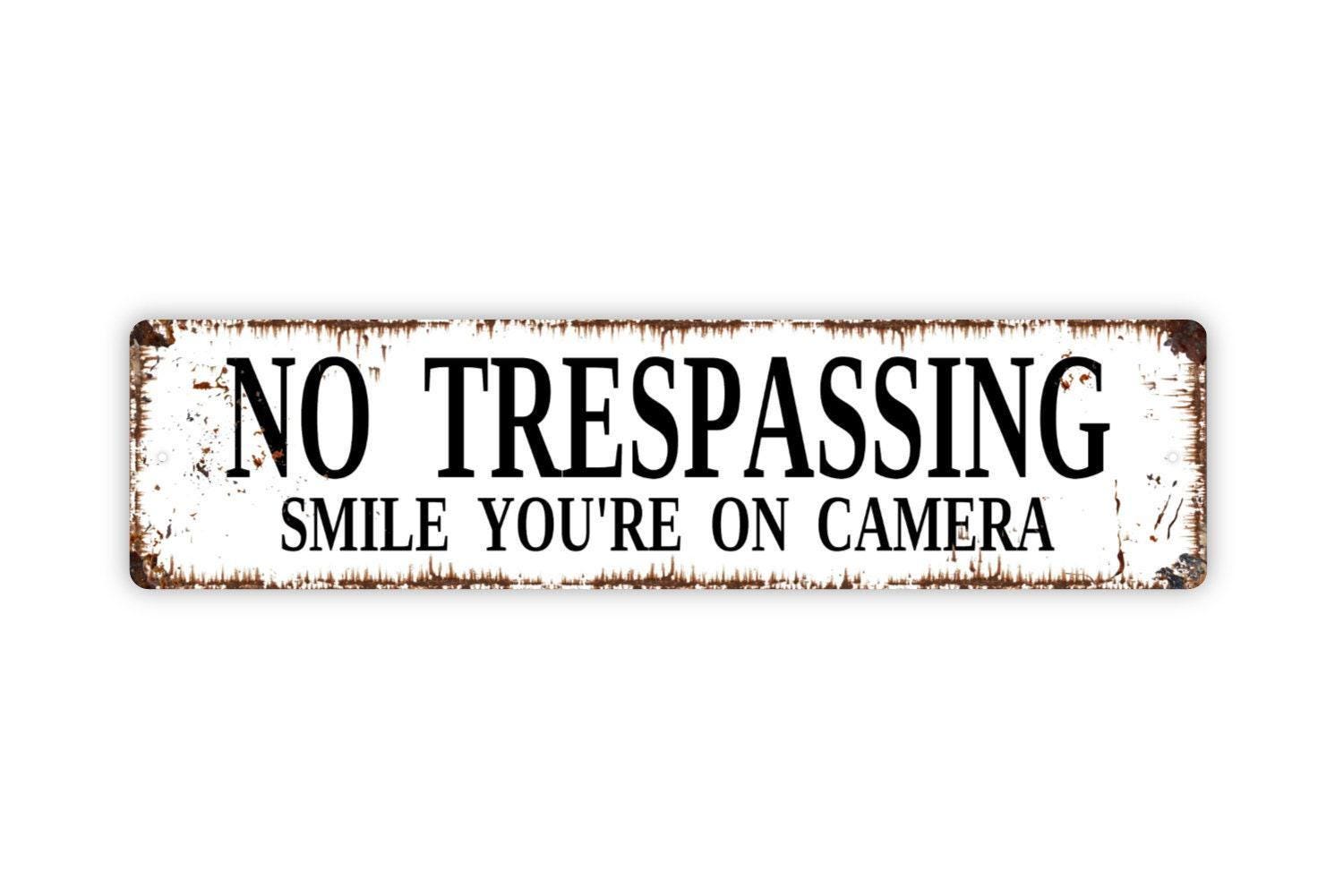 No Trespassing Smile You're On Camera Sign - Vinyl Sticker Or Metal Street Sign or Door Name Plate Plaque