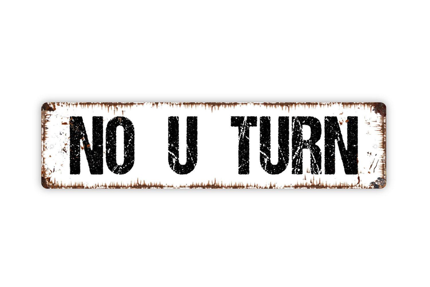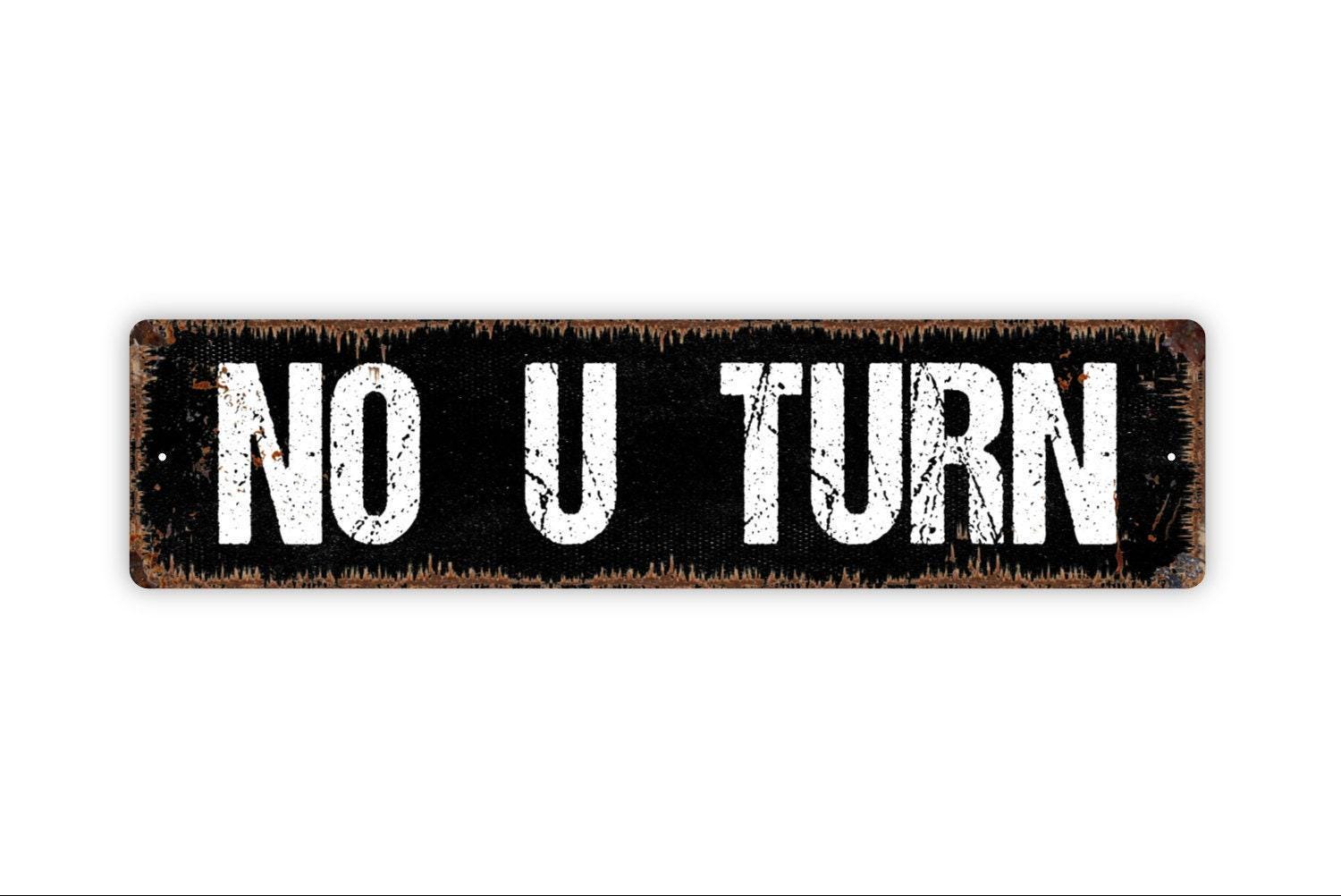 No U Turn Sign Metal or Vinyl Sticker | Road Sign Decor | Rustic Street Sign | Traffic Direction Sign | Funny Garage or Man Cave Sticker