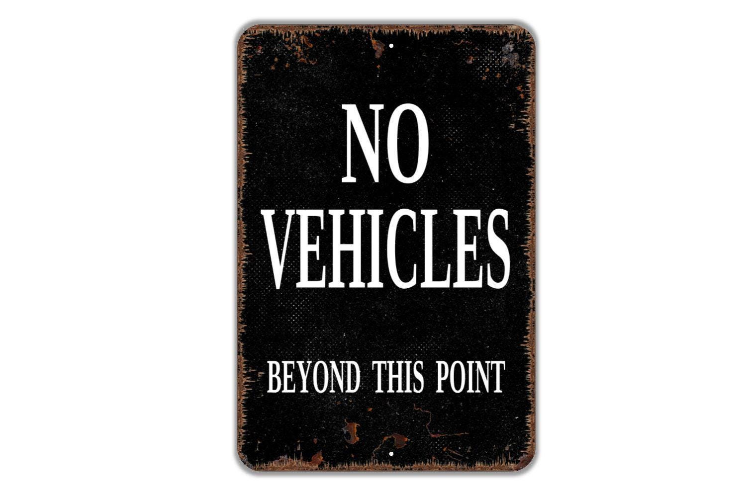 No Vehicles Beyond This Point Sign - Private Road Property Parking Metal Indoor or Outdoor Wall Art