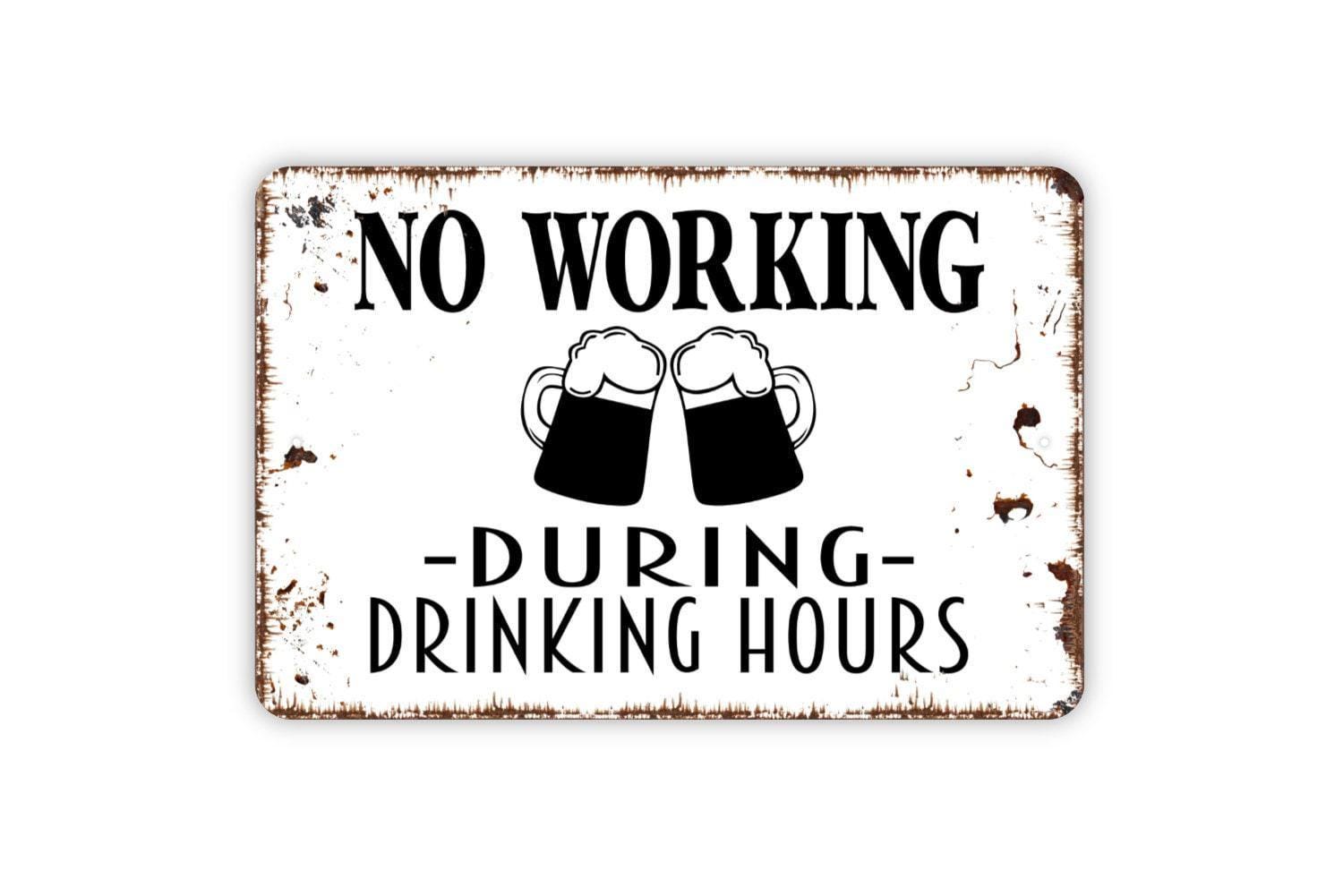 No Working During Drinking Hours Sign Metal or Vinyl Sticker | Funny Bar Decor | Rustic Home Bar Sign | Man Cave Wall Art | Party Gift