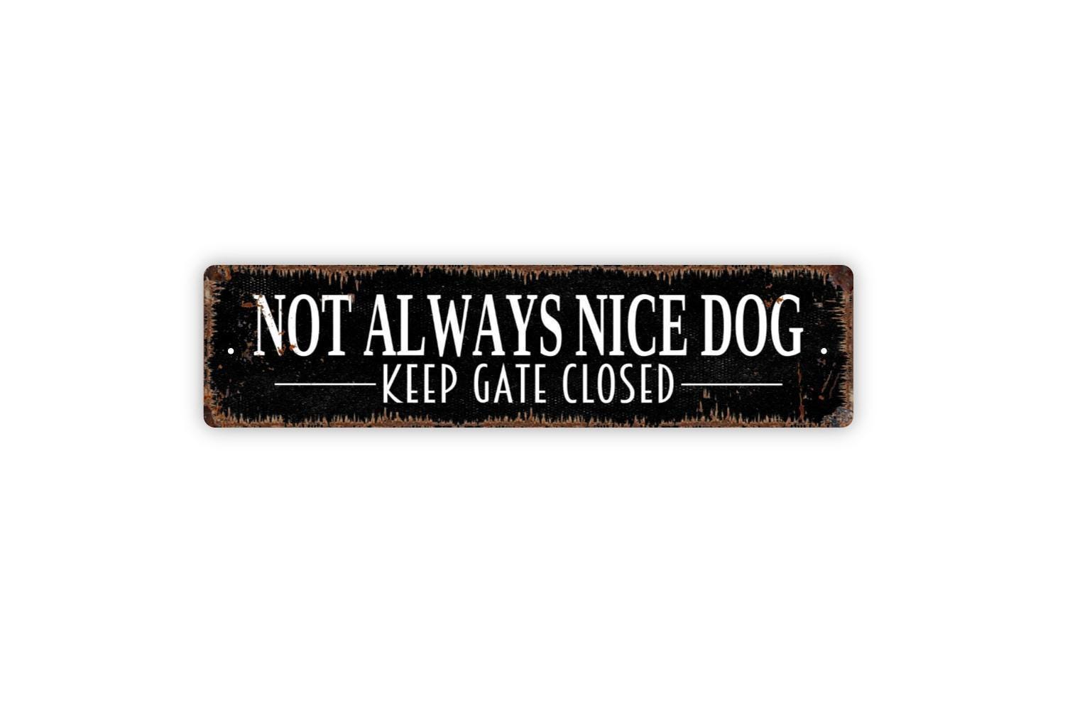 Not Always Nice Dog Keep Gate Closed Sign | Dog Warning Yard Decor | Metal Sign or Vinyl Sticker for Fence Home Property