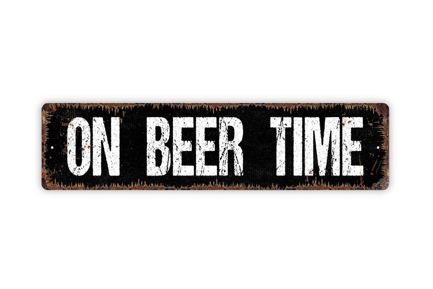 On Beer Time Sign - Bar Pub Man Cave Patio Drink Alcohol Brewery Vinyl Sticker Or Street Metal Sign or Door Name Plate Plaque