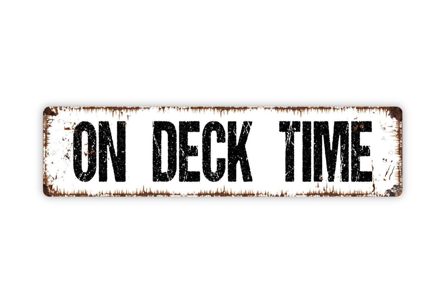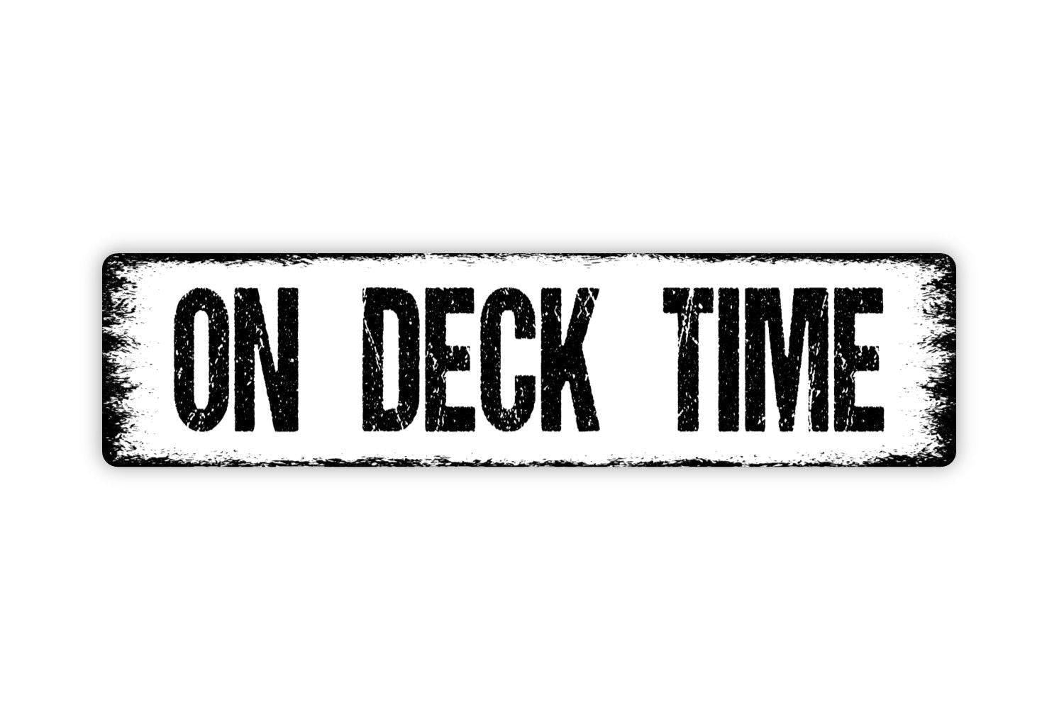 On Deck Time Sign - Funny Backyard Paradise Patio Lanai Relax Fire Pit Cook Out Rustic Street Metal Sign or Door Name Plate Plaque