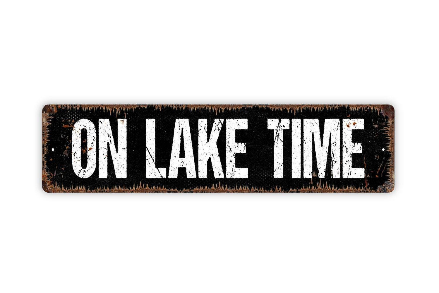 On Lake Time Sign - Lakehouse Lake Life Boat Dock Vinyl Sticker Or Street Metal Sign or Door Name Plate Plaque