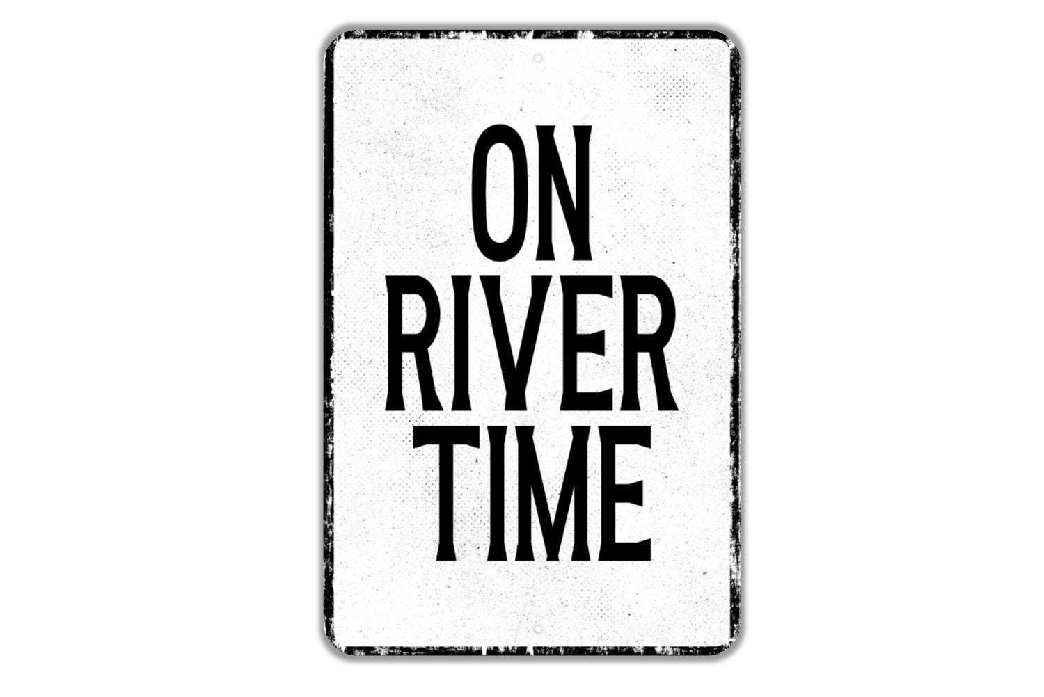 On River Time Sign | Rustic Cabin Metal Sign or Vinyl Sticker | Lake House, Cottage, Fishing Camp, Dock, Vacation Home, Waterfront Sign