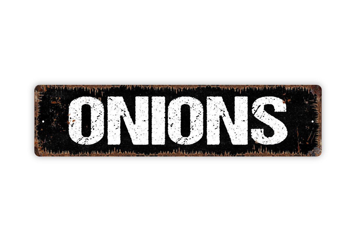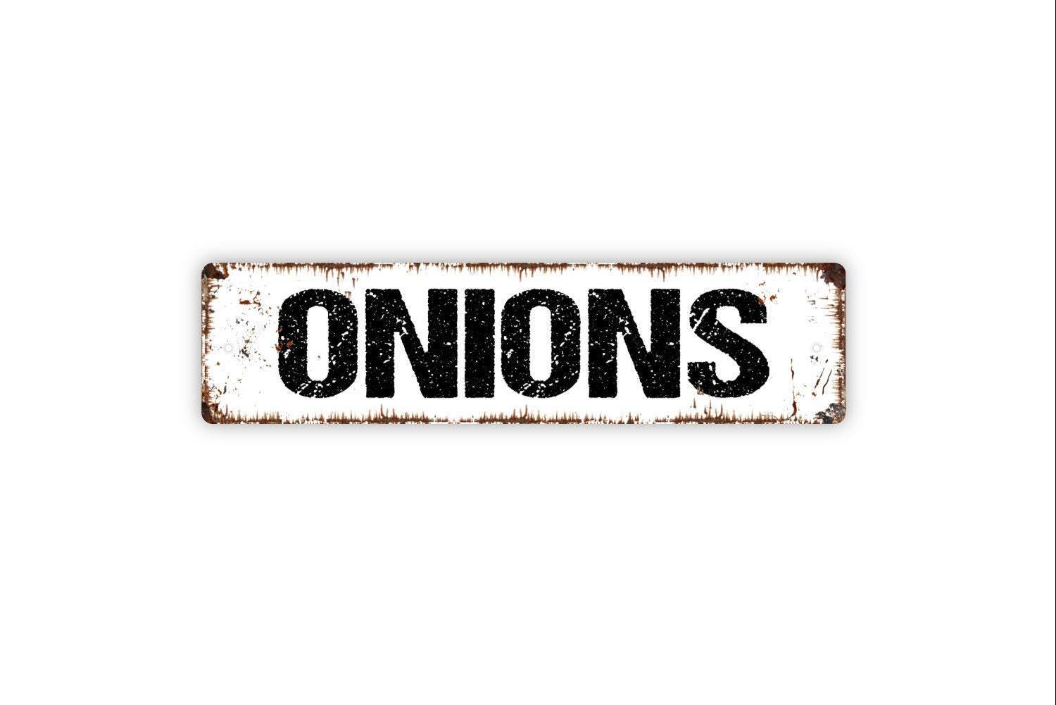 Onions Sign Metal or Vinyl Sticker | Farm Fresh Produce Sign | Rustic Kitchen Decor | Farmers Market Sticker | Country Farmhouse Wall Art