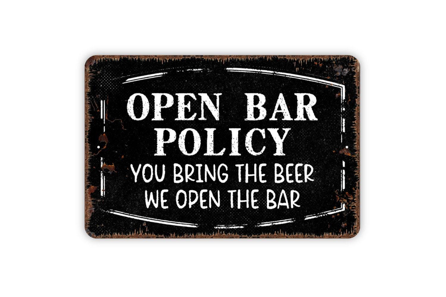 Open Bar Policy You Bring The Beer We Open The Bar Sign | Funny Drinking Party Decor | Metal Sign or Vinyl Sticker for Patio Bar Home