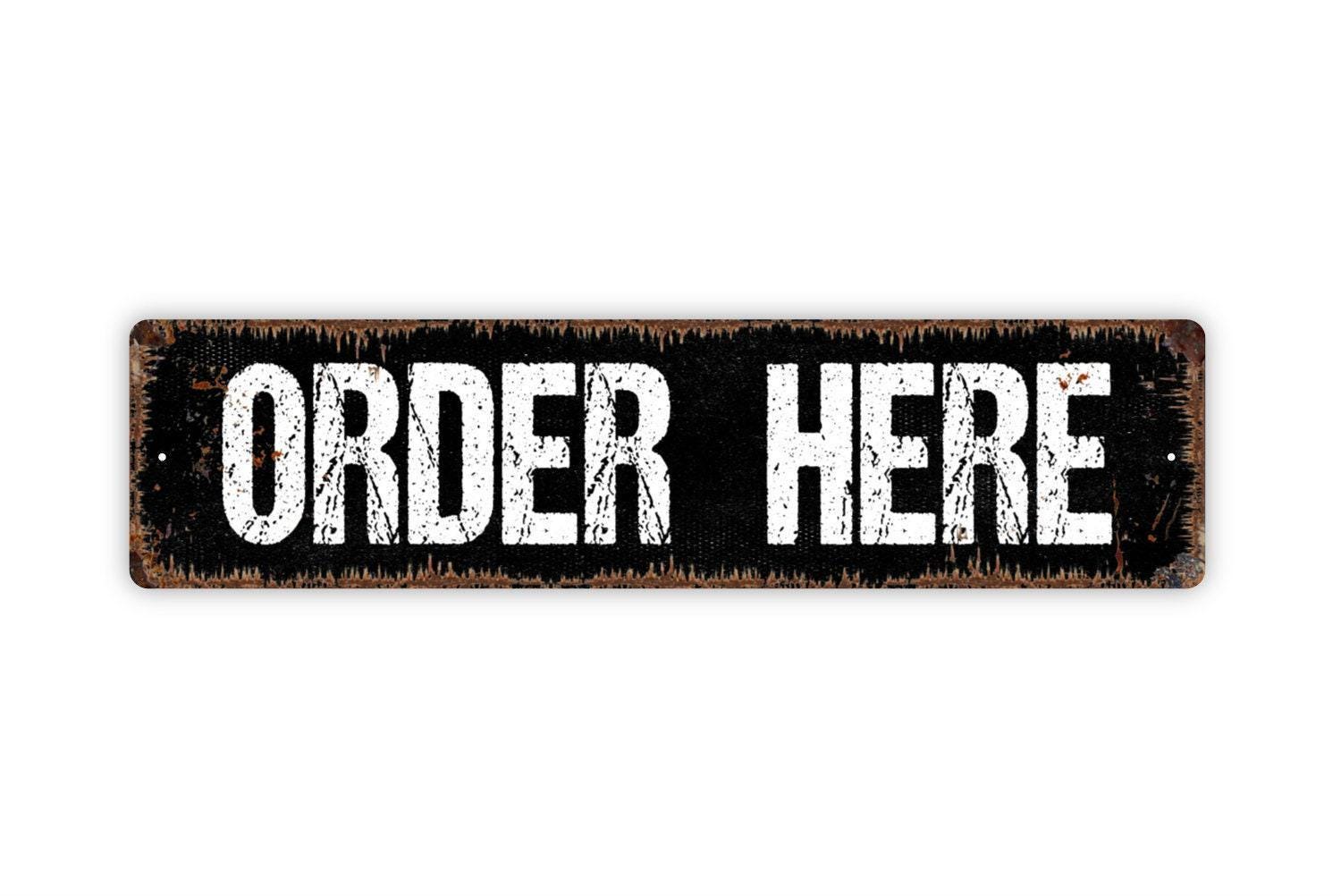 Order Here Sign - Metal Vinyl Sticker Or Street Sign or Door Name Plate Plaque