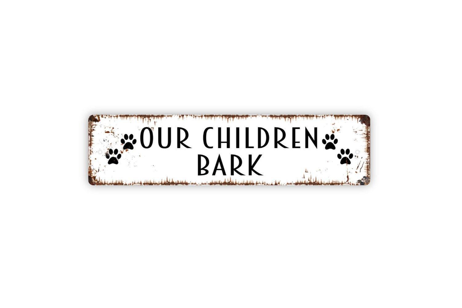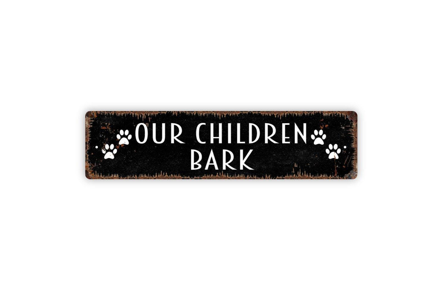 Our Children Bark Sign - Dog Puppy Doggie Doggy K9 Pet Owner Vinyl Sticker Or Street Metal Sign or Door Name Plate Plaque