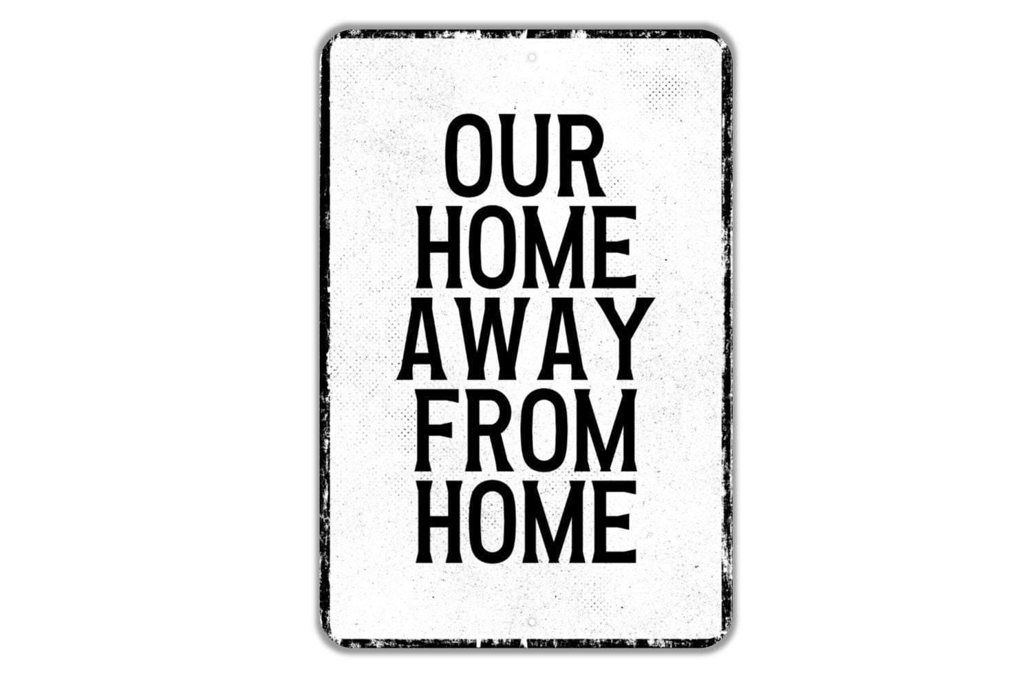 Our Home Away From Home Sign | Rustic Cabin Metal Sign or Vinyl Sticker | Vacation House, RV, Camper, Cottage, Lake House, Family Retreat
