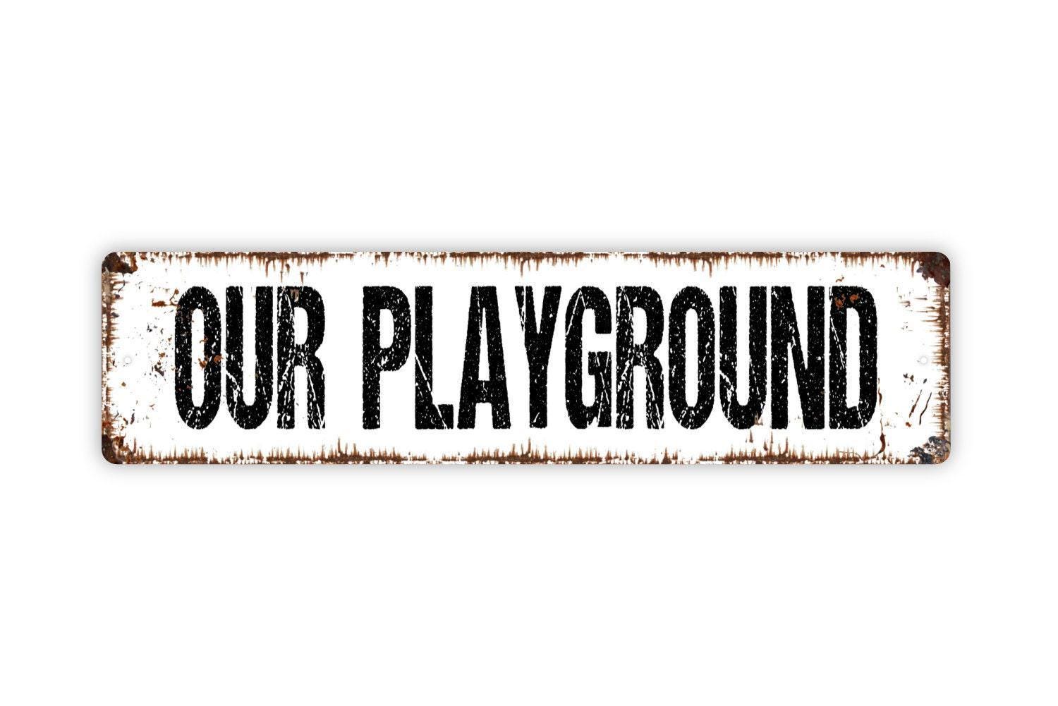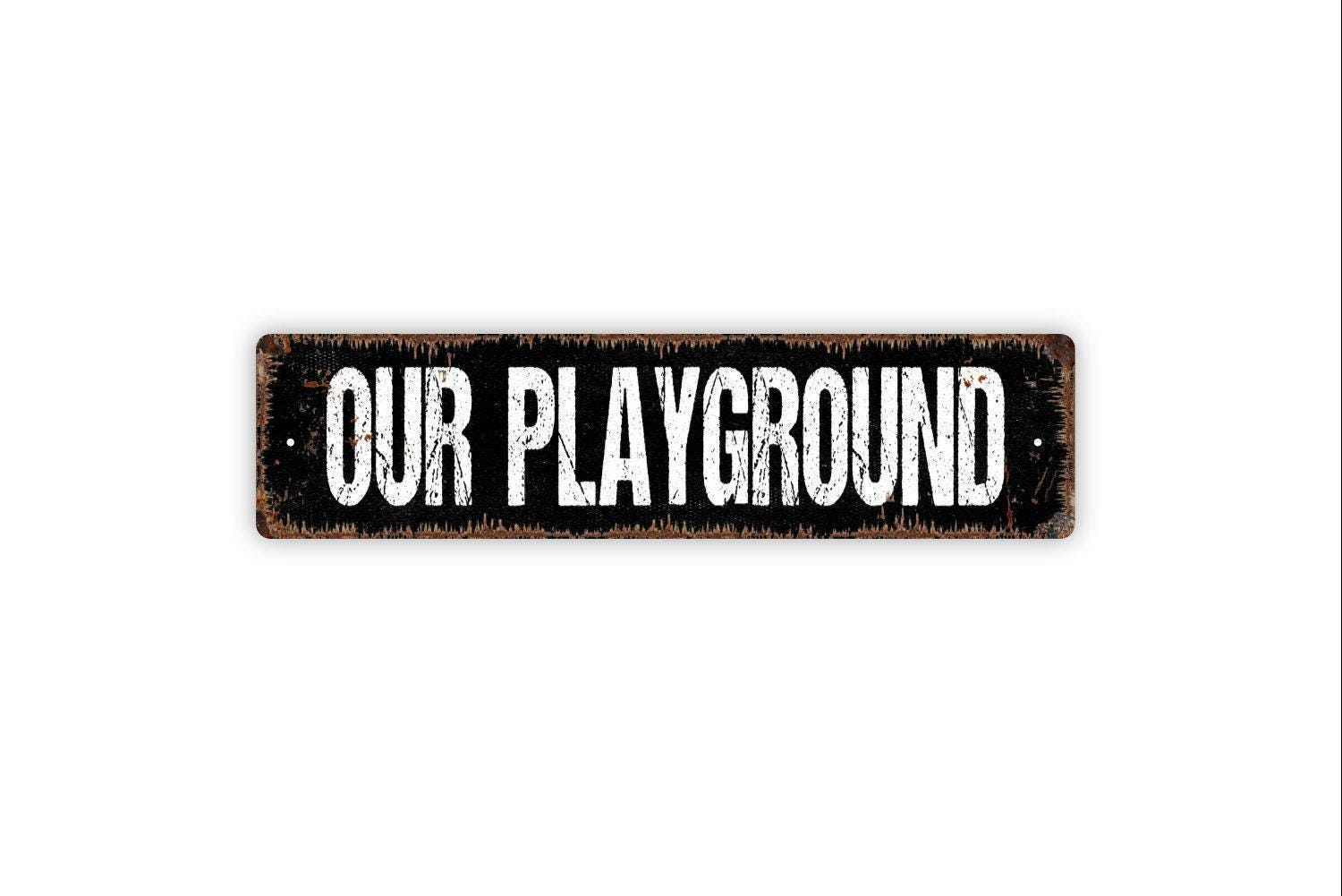 Our Playground Sign - Backyard Treehouse Fort Swing Set Play Toys Kids Games Vinyl Sticker Or Street Metal Sign or Door Name Plate Plaque