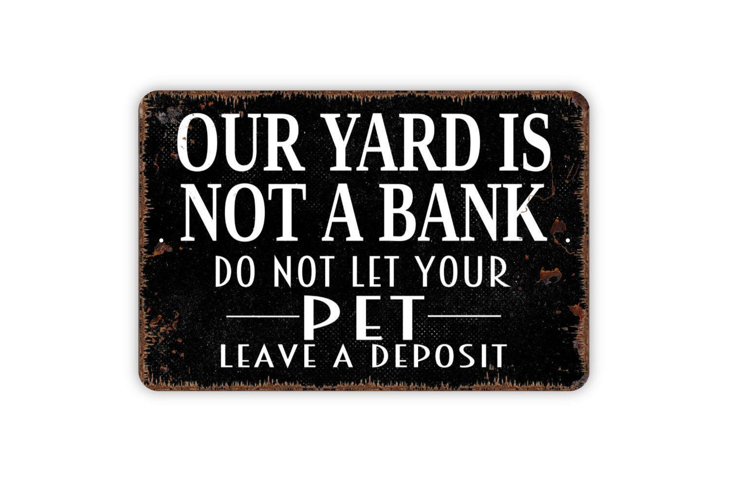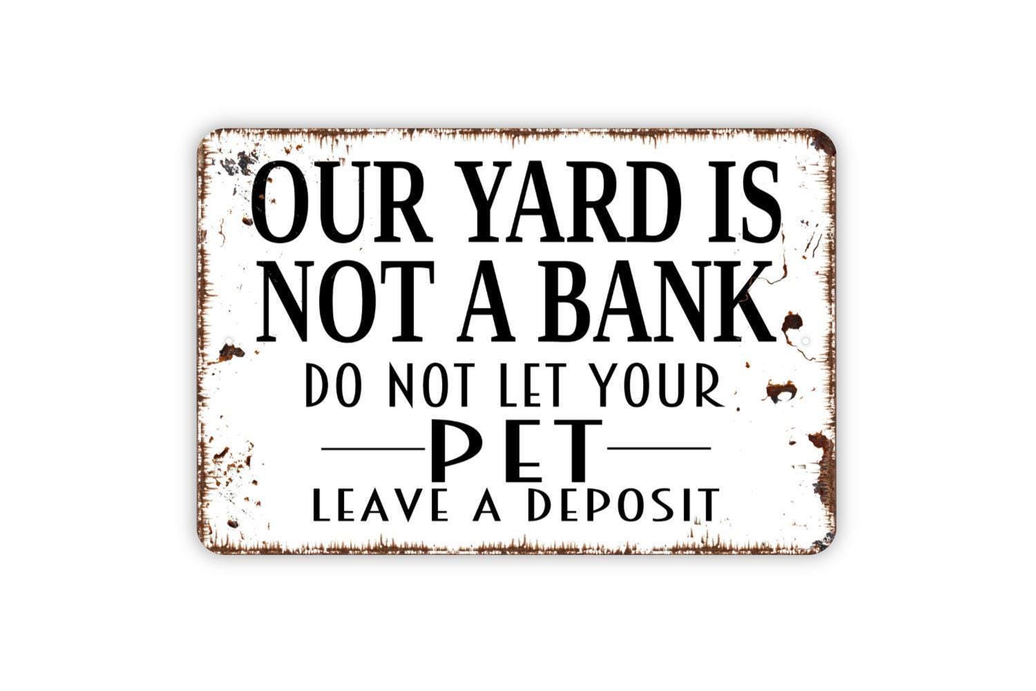 Our Yard Is Not A Bank Do Not Let Your Pet Leave A Deposit Sign Metal or Vinyl Sticker | Funny Dog Yard Sign | No Pooping Pet Sticker Decor