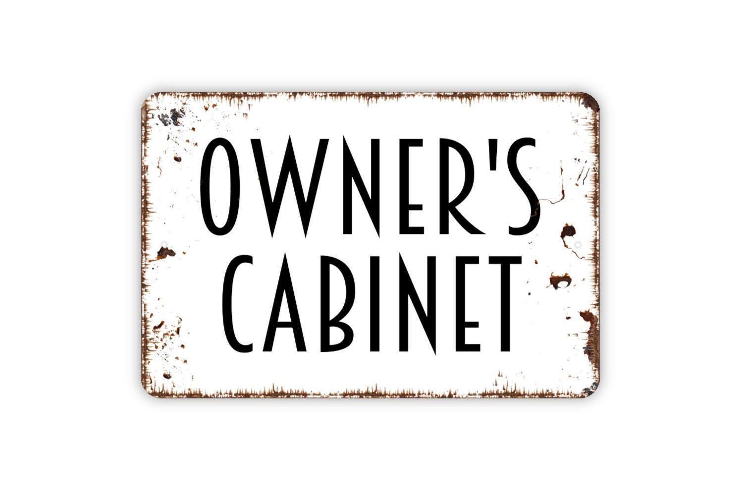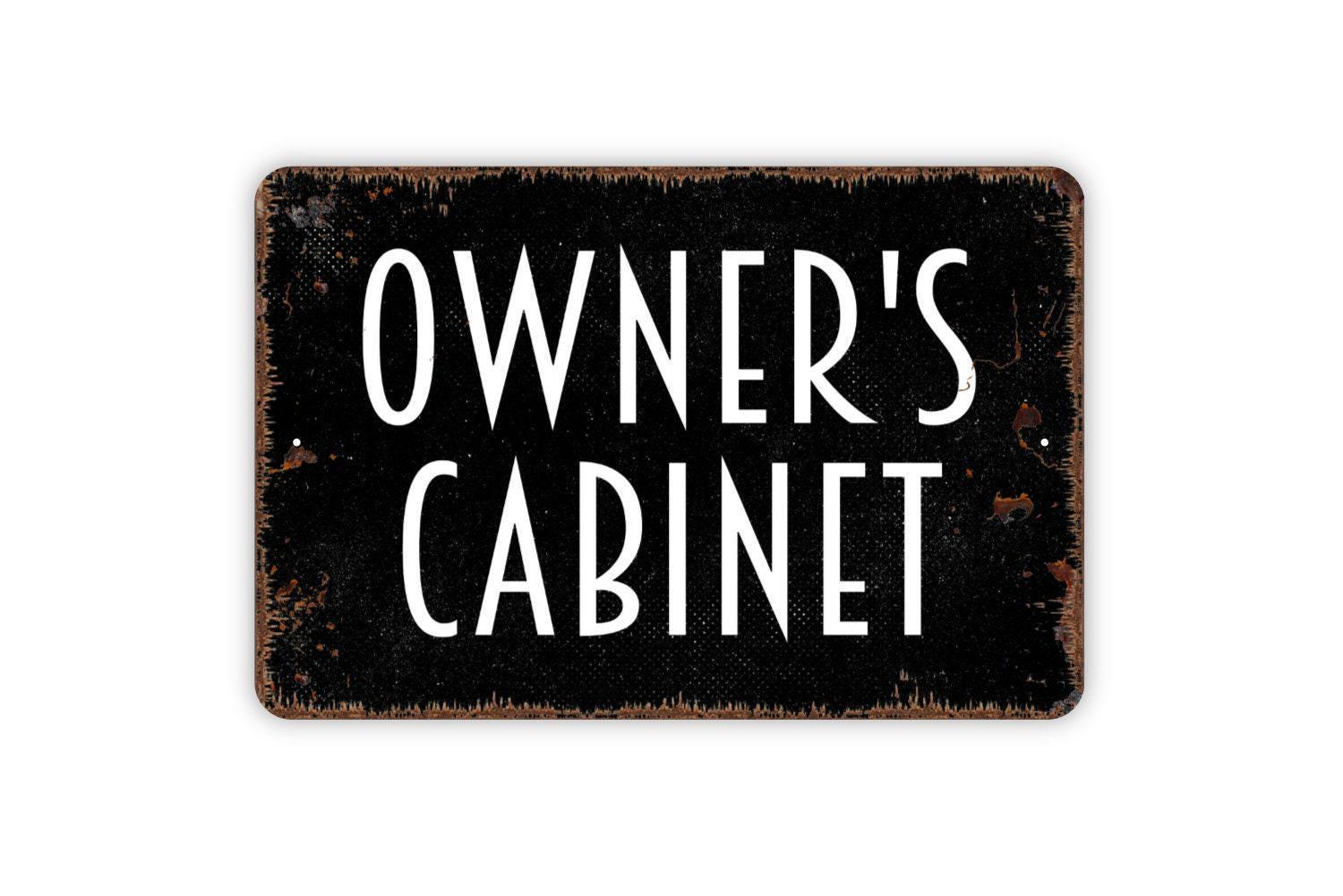 Owner's Cabinet Sign Metal or Vinyl Sticker | Rustic Office Sign | Funny Man Cave Sign | Business Door Decor | Personalized Cabinet Sticker