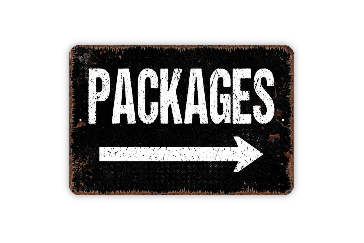 Packages Sign with Right or Left Arrow - Direction Instructions Metal Wall Art - Indoor or Outdoor