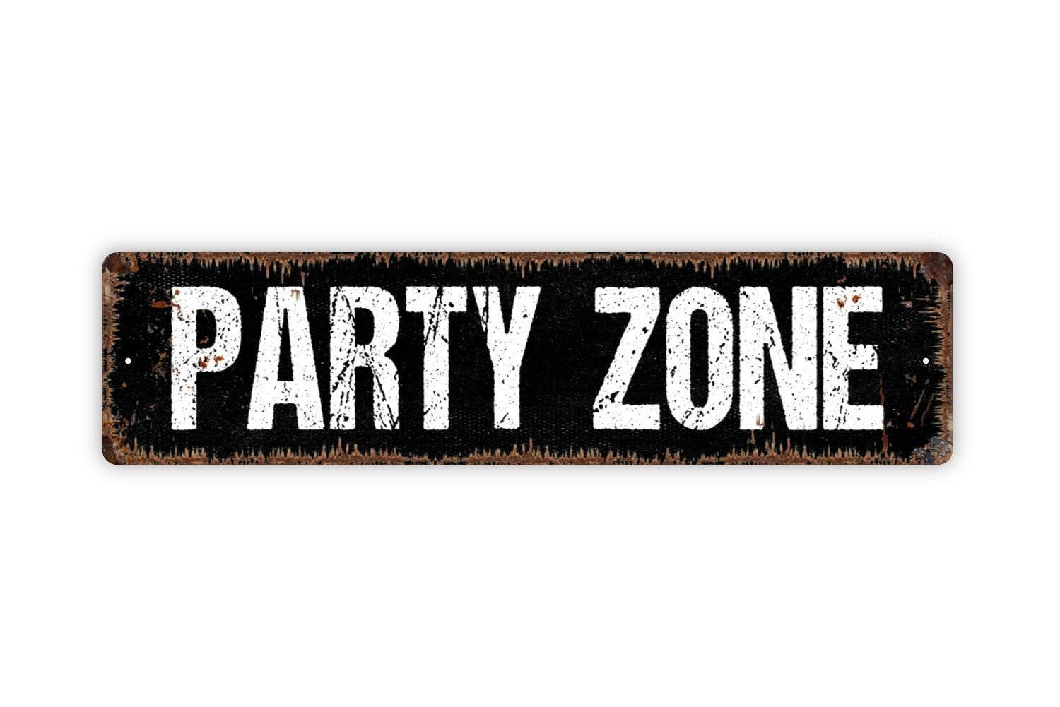 Party Zone Sign - Vinyl Sticker Or Street Metal Sign or Door Name Plate Plaque