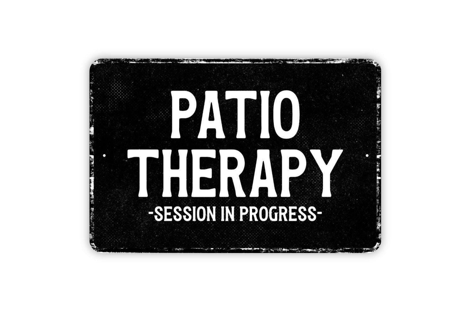 Patio Therapy Session In Progress Sign Metal Wall Art or Vinyl Sticker for Porch, Deck, Backyard, Outdoor Living, Relaxing Patio Decor