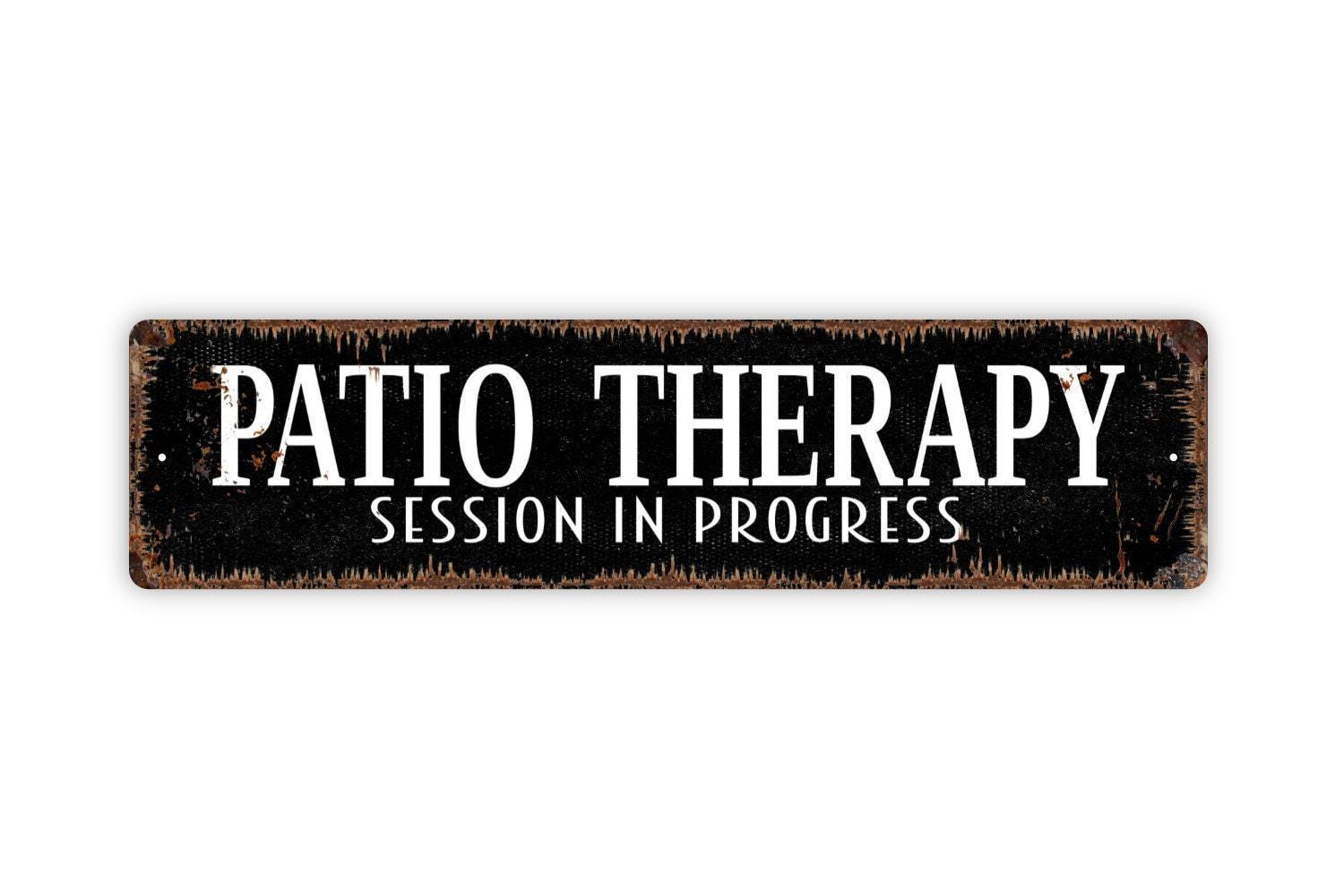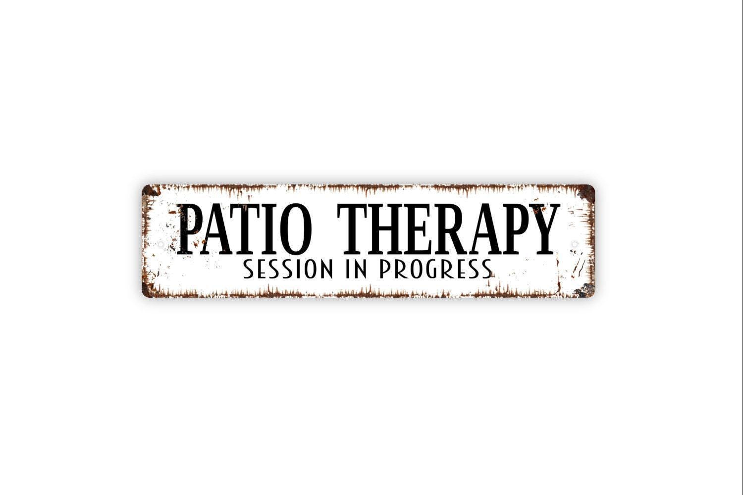 Patio Therapy Session In Progress Sign | Relaxing Porch Garden Deck Decor | Metal Sign or Vinyl Sticker for Outdoor Space