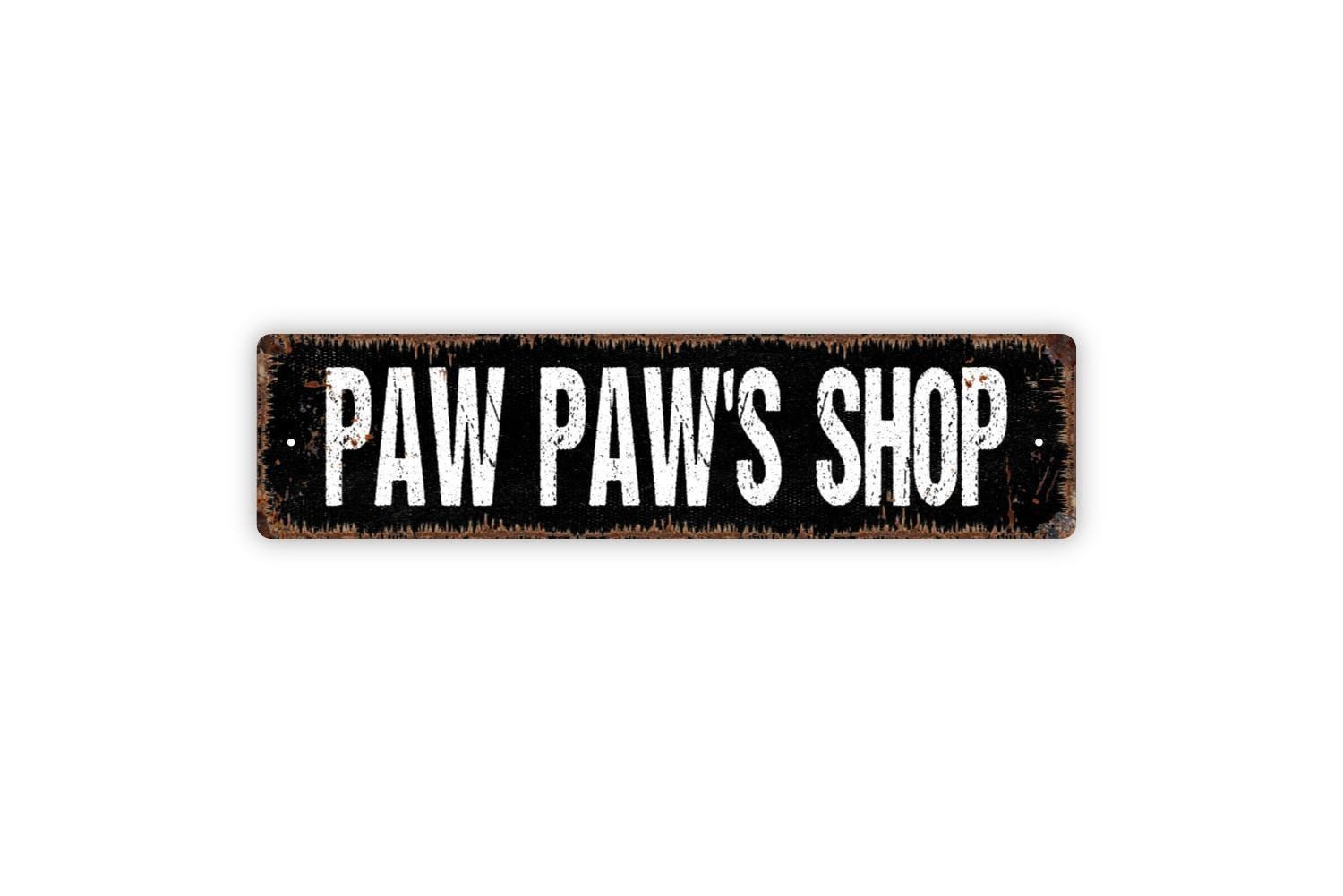 Paw Paw's Shop Sign - Workshop Garage Man Cave Grandpa Shed Storage Gardening Vinyl Sticker Or Street Metal Sign or Door Name Plate Plaque