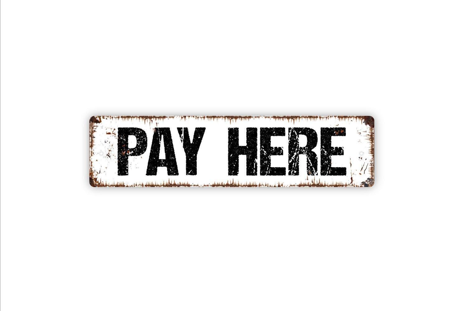 Pay Here Sign Metal or Vinyl Sticker | Cashier Counter Sign | Rustic Business Decor | Checkout Direction Sign | Storefront Payment Sticker