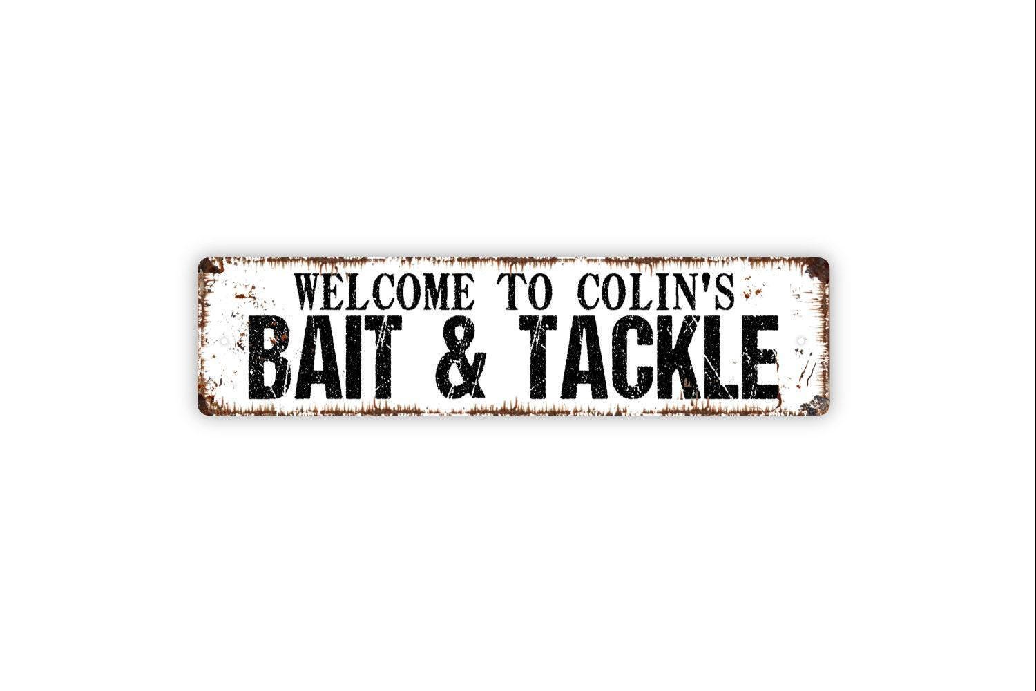 Personalized Bait and Tackle Sign | Custom Fishing Sign | Lake House Cabin Decor | Fisherman Gift Wall Art | Rustic Bait Shop Metal Sign