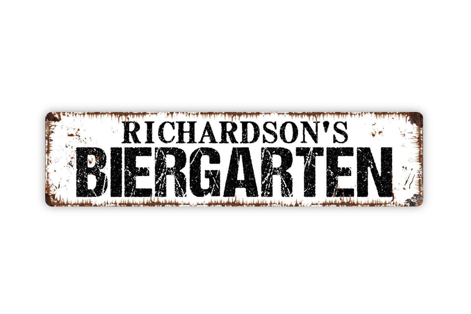 Personalized Biergarten Sign - Beer Garden Pub Bar Tavern Saloon Drink German Booze Rustic Street Metal Sign or Door Name Plate Plaque