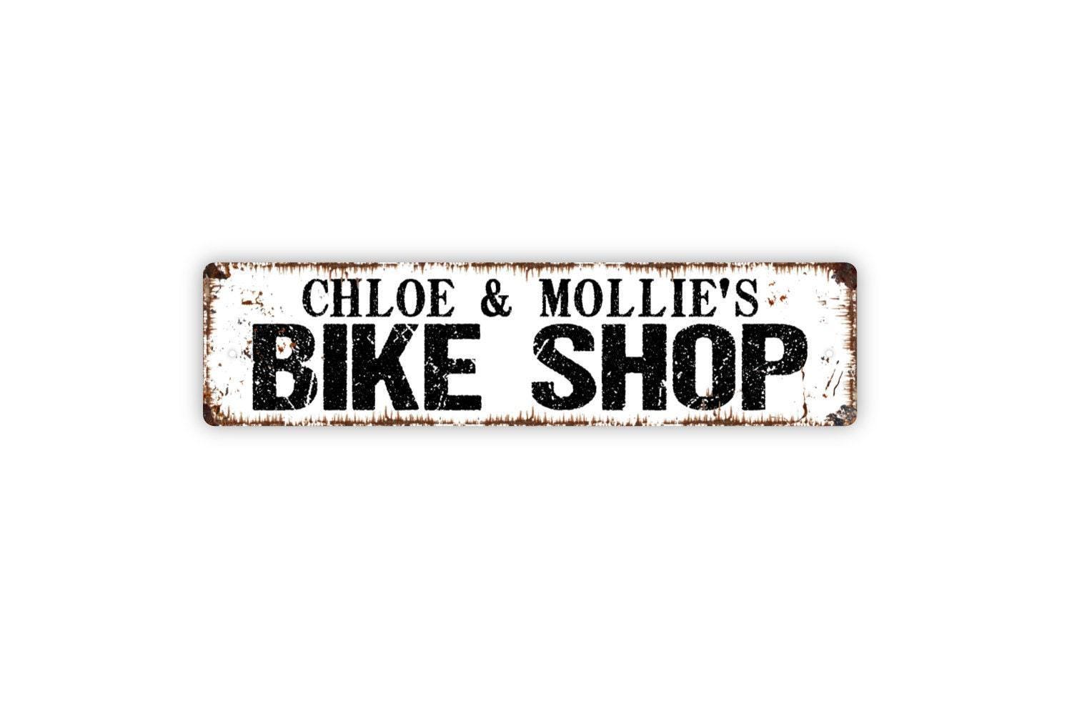 Personalized Bike Shop Sign – Custom Bicycle Repair Shop Wall Decor – Rustic Cycling Sign – Metal Sign or Vinyl Sticker