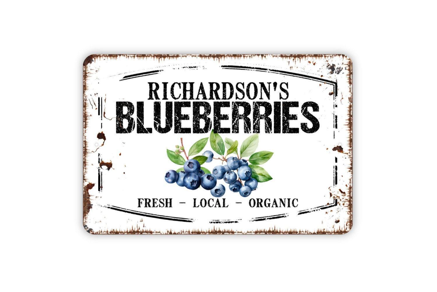 Personalized Blueberries Sign - Custom Your Name Blueberry Farm Garden Metal Sign Wall Art Indoor Or Outdoor