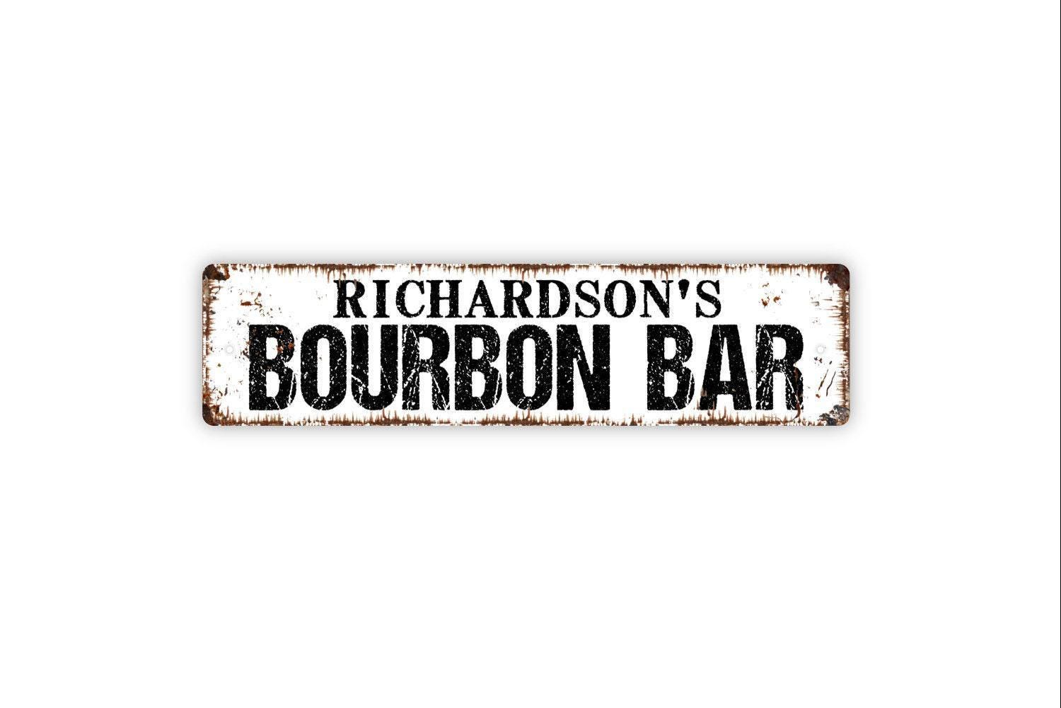 Personalized Bourbon Bar Sign, Custom Metal Sign, Vinyl Sticker Or Street Sign or Door Name Plate Plaque