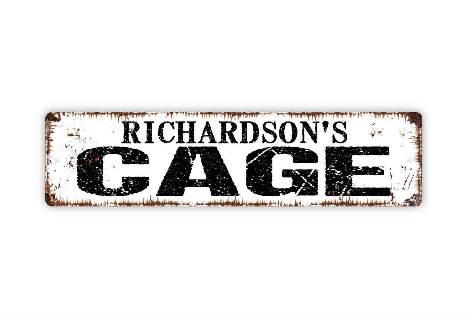 Personalized Cage Sign, Custom Metal Sign, Vinyl Sticker Or Street Sign or Door Name Plate Plaque