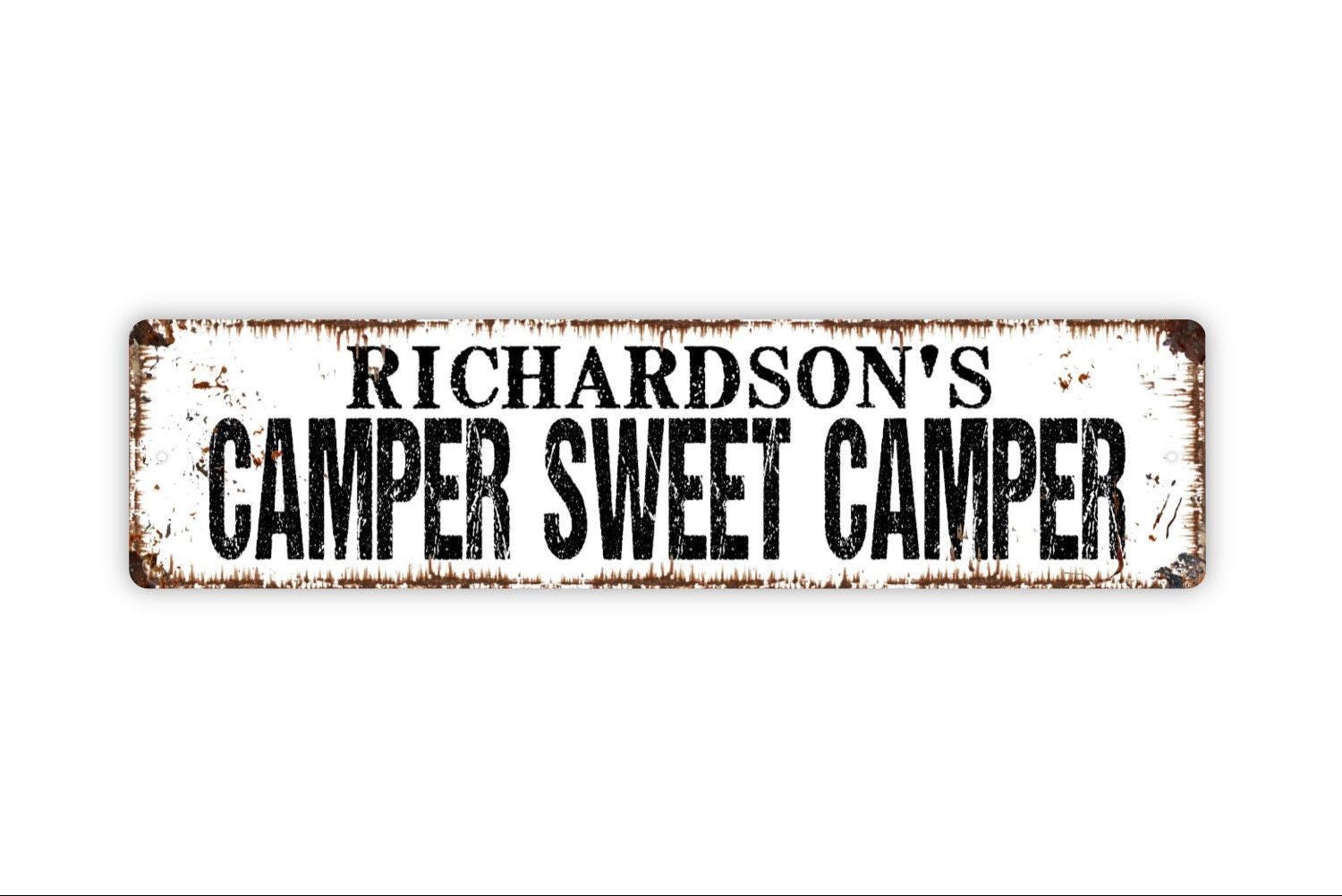 Personalized Camper Sweet Camper Sign, Custom Metal Sign, Vinyl Sticker Or Street Sign or Door Name Plate Plaque