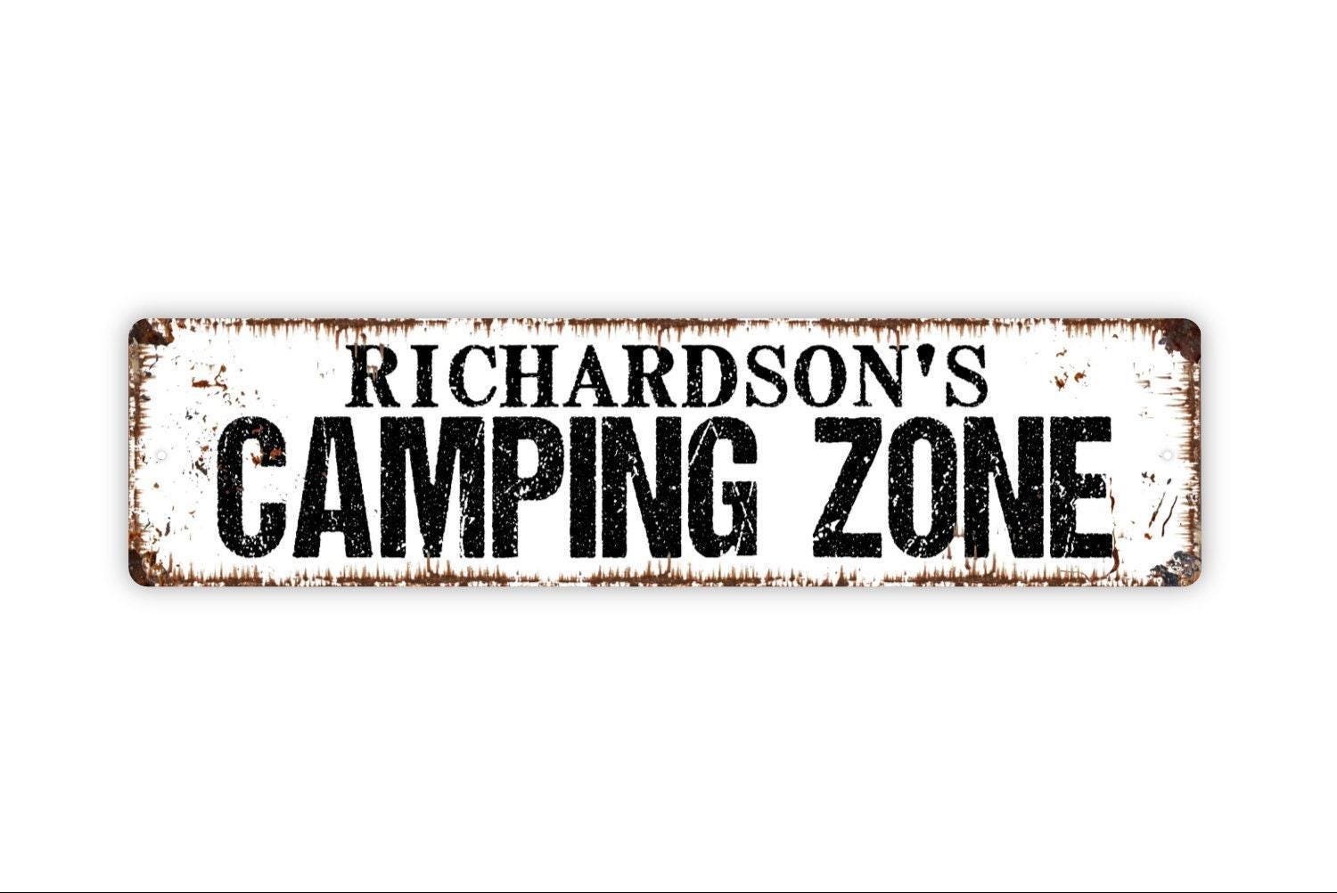 Personalized Camping Zone Sign, Custom Metal Sign, Vinyl Sticker Or Street Sign or Door Name Plate Plaque