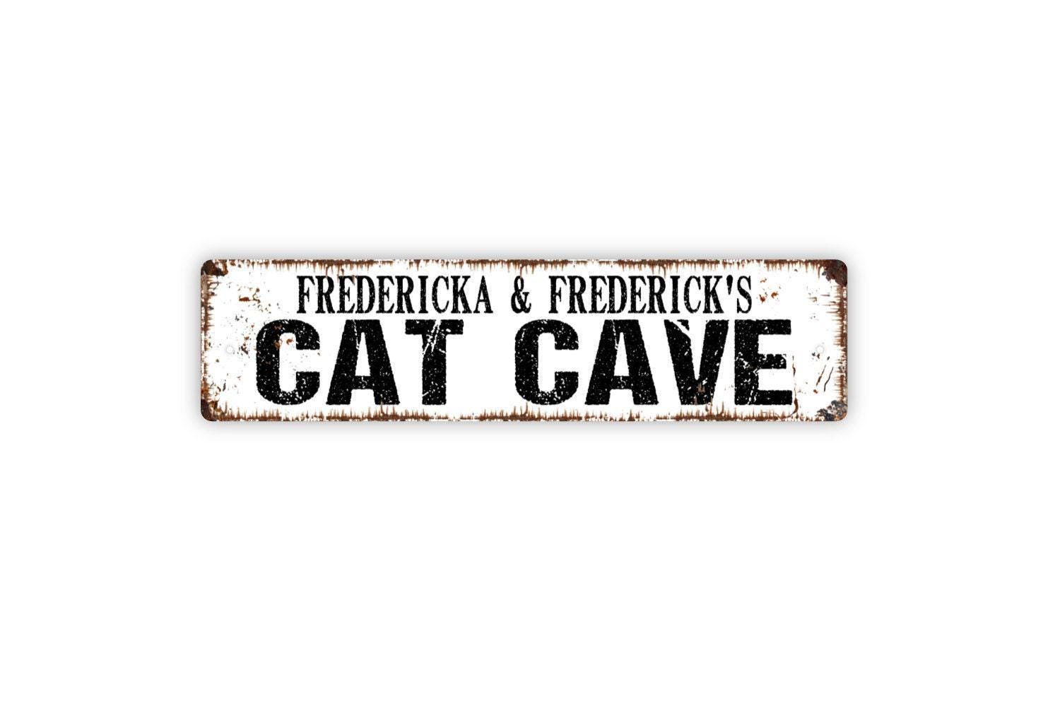 Personalized Cat Cave Sign | Custom Cat Lover Sign Metal or Vinyl Sticker | Funny Pet Decor | Rustic Farmhouse Cat Sign | Cat Owner Gift