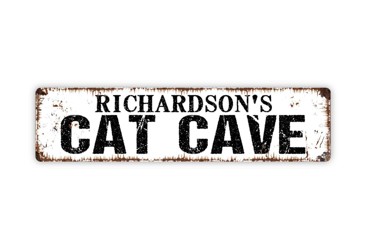 Personalized Cat Cave Sign, Custom Metal Sign, Vinyl Sticker Or Street Sign or Door Name Plate Plaque