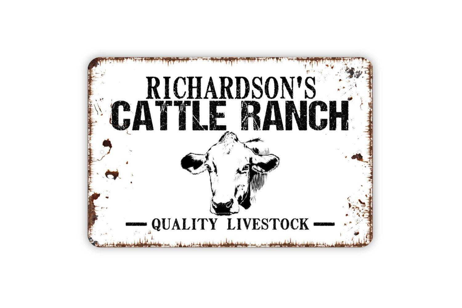 Personalized Cattle Ranch Sign - Custom Cow Metal Wall Art