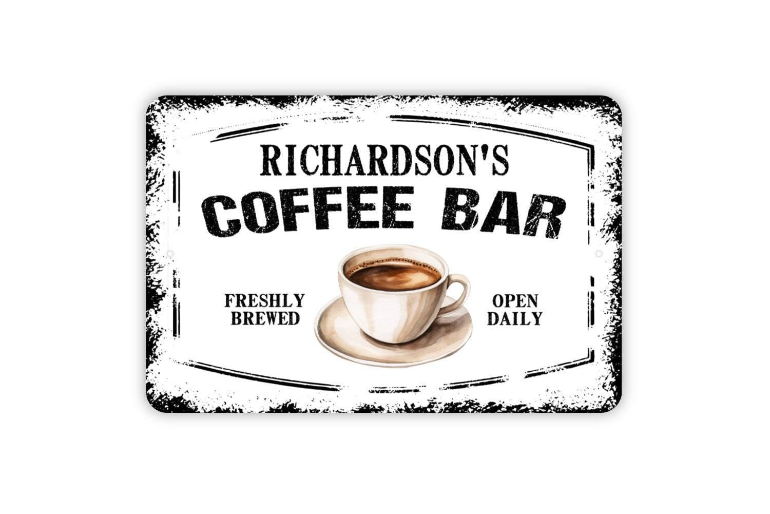 Personalized Coffee Bar Sign Freshly Brewed Open Daily | Custom Rustic Farmhouse Kitchen or Café Wall Sign | Metal or Vinyl Sticker