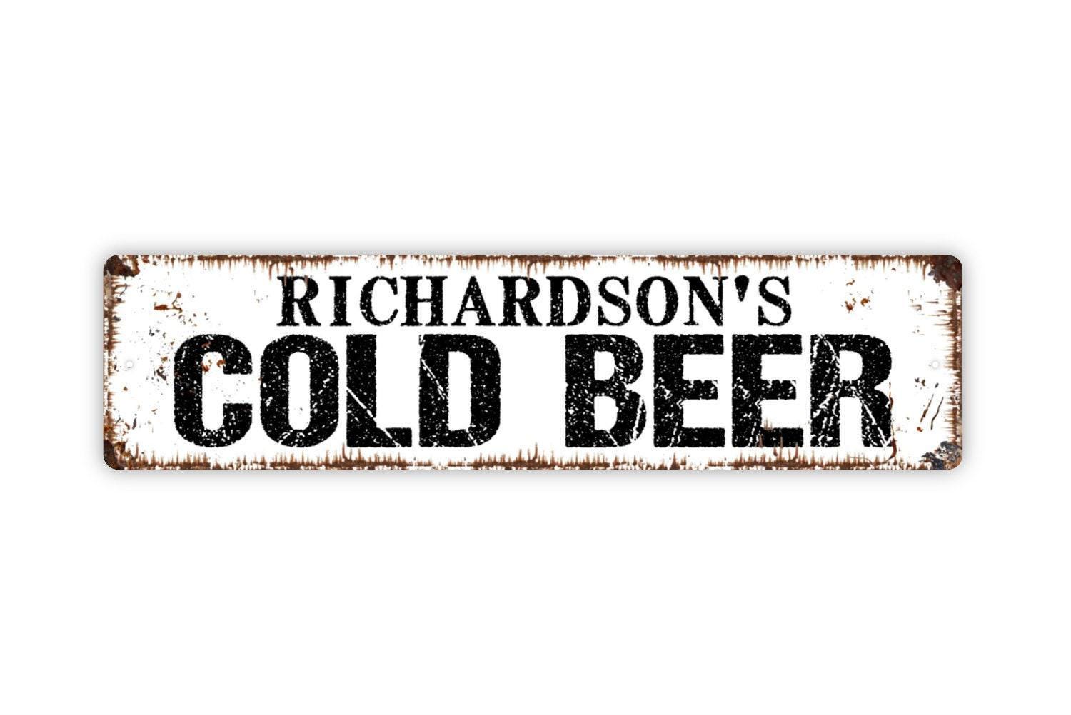 Personalized Cold Beer Sign, Custom Metal Sign, Vinyl Sticker Or Street Sign or Door Name Plate Plaque