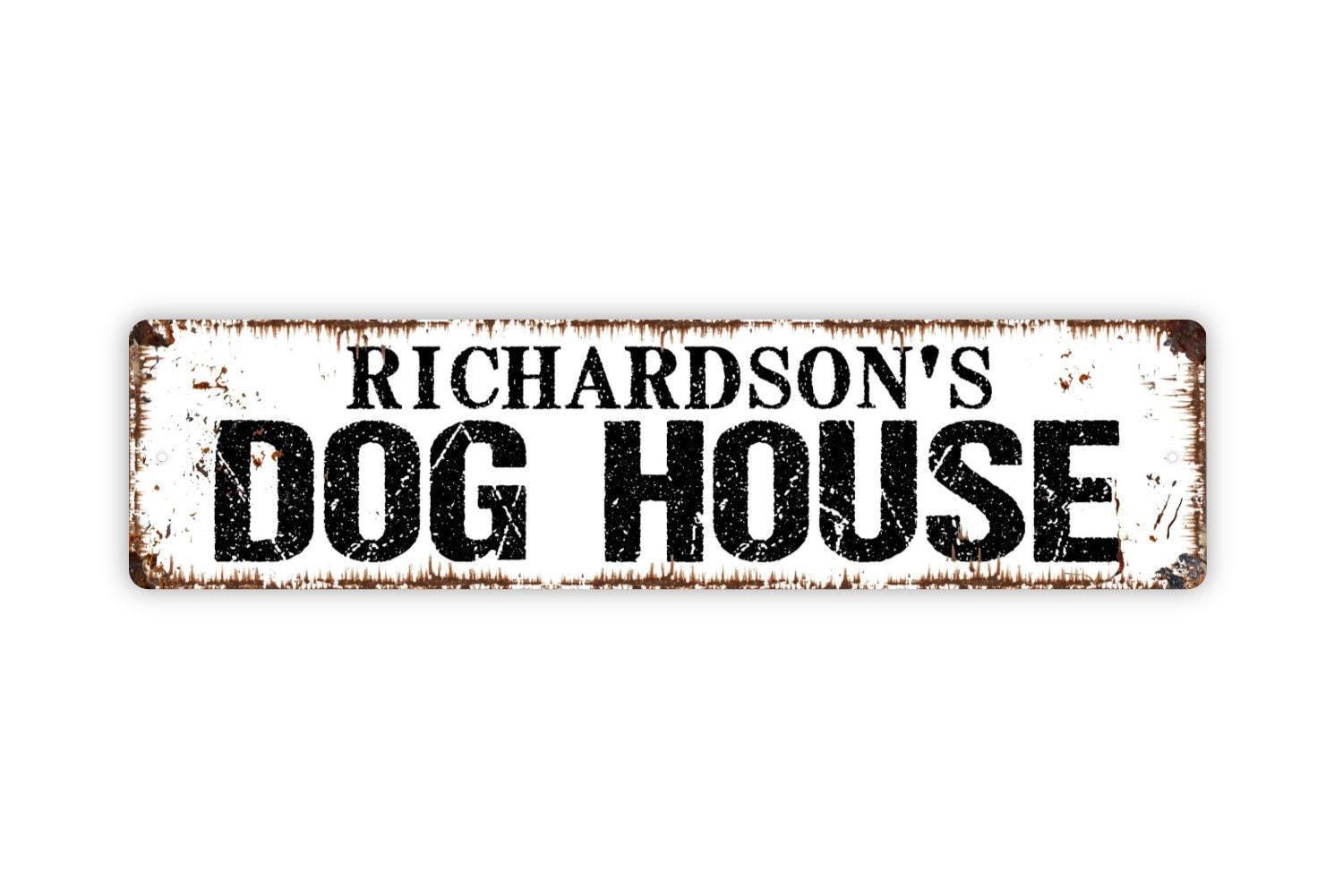 Personalized Dog House Sign Custom Pet Name Sign | Metal Wall Sign or Vinyl Sticker | Dog Lover Gift for Home, Yard, Porch, or Kennel | Size