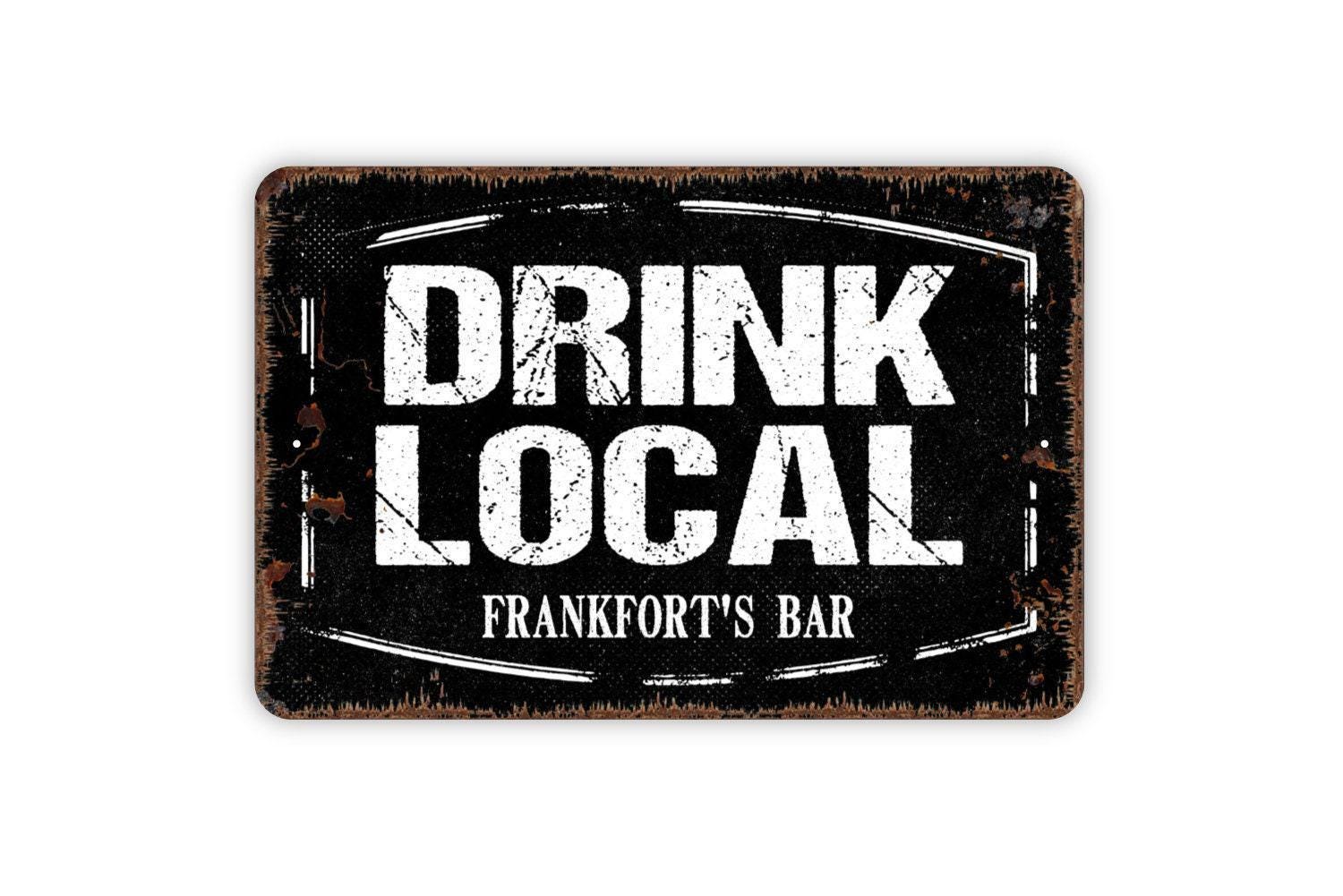 Personalized Drink Local Sign - Custom Man Cave Bar Pub Brewery Metal Wall Art Indoor Or Outdoor