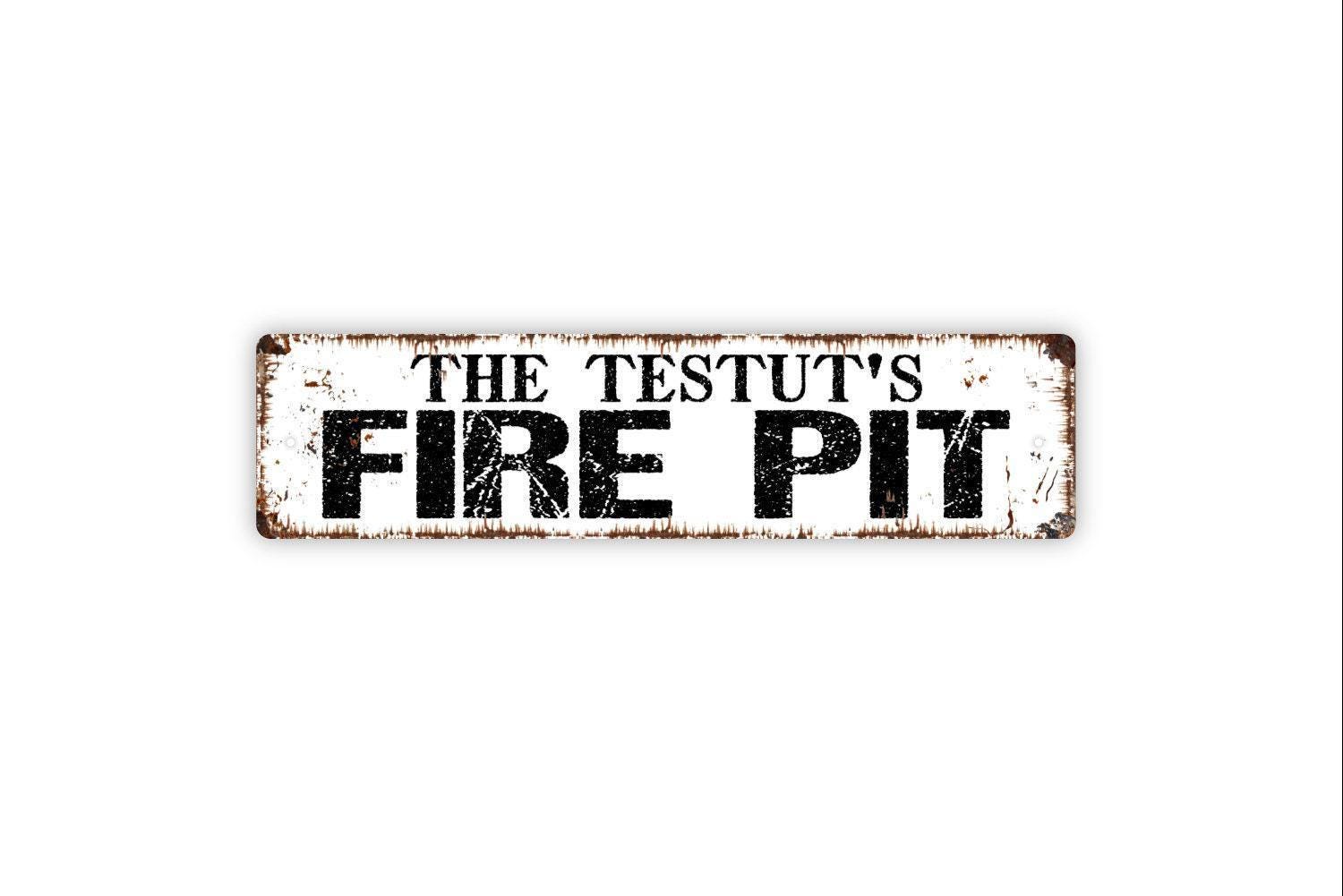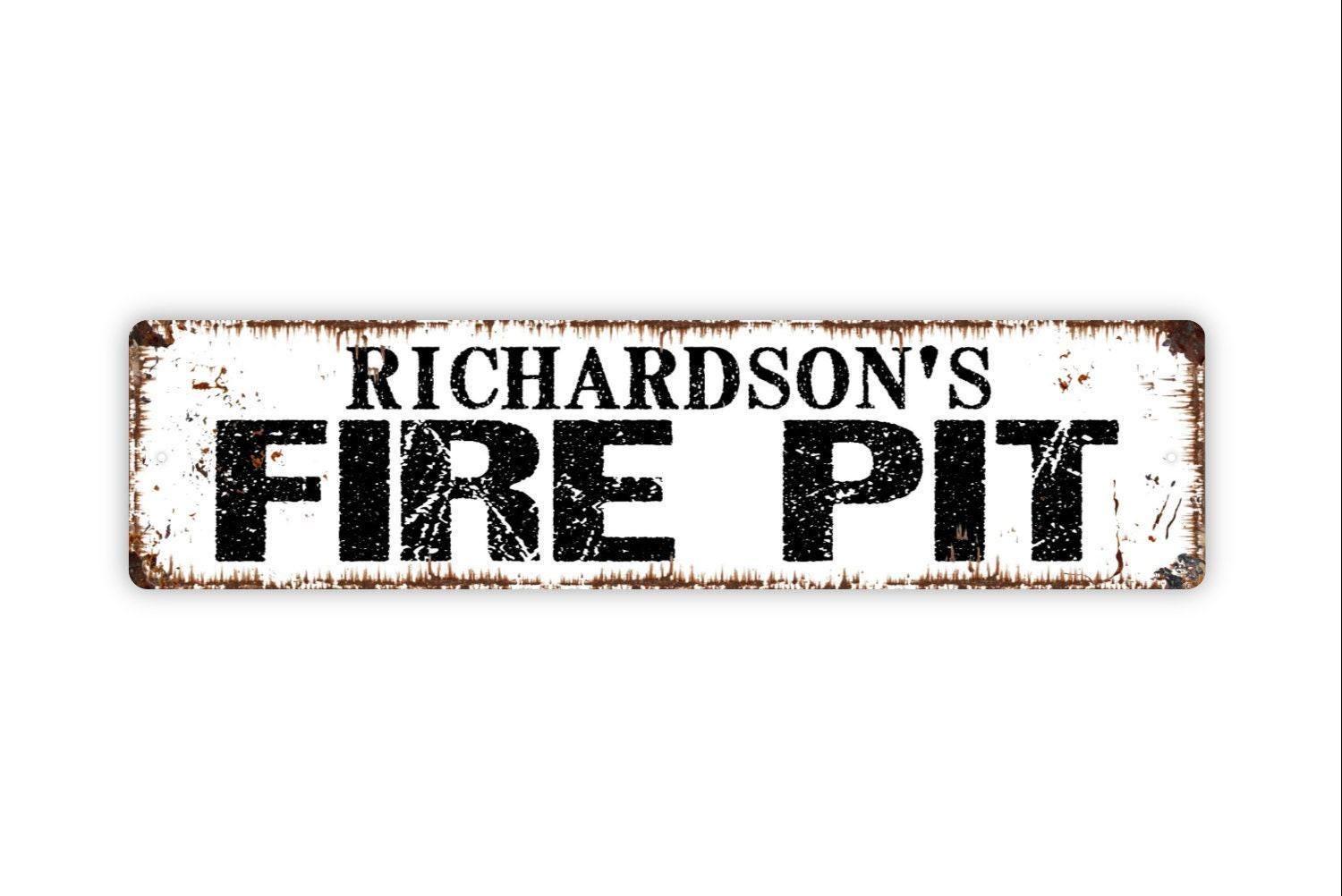 Personalized Fire Pit Sign - Campfire Camping Outdoor Kitchen Vinyl Sticker Or Street Metal Sign or Door Name Plate Plaque