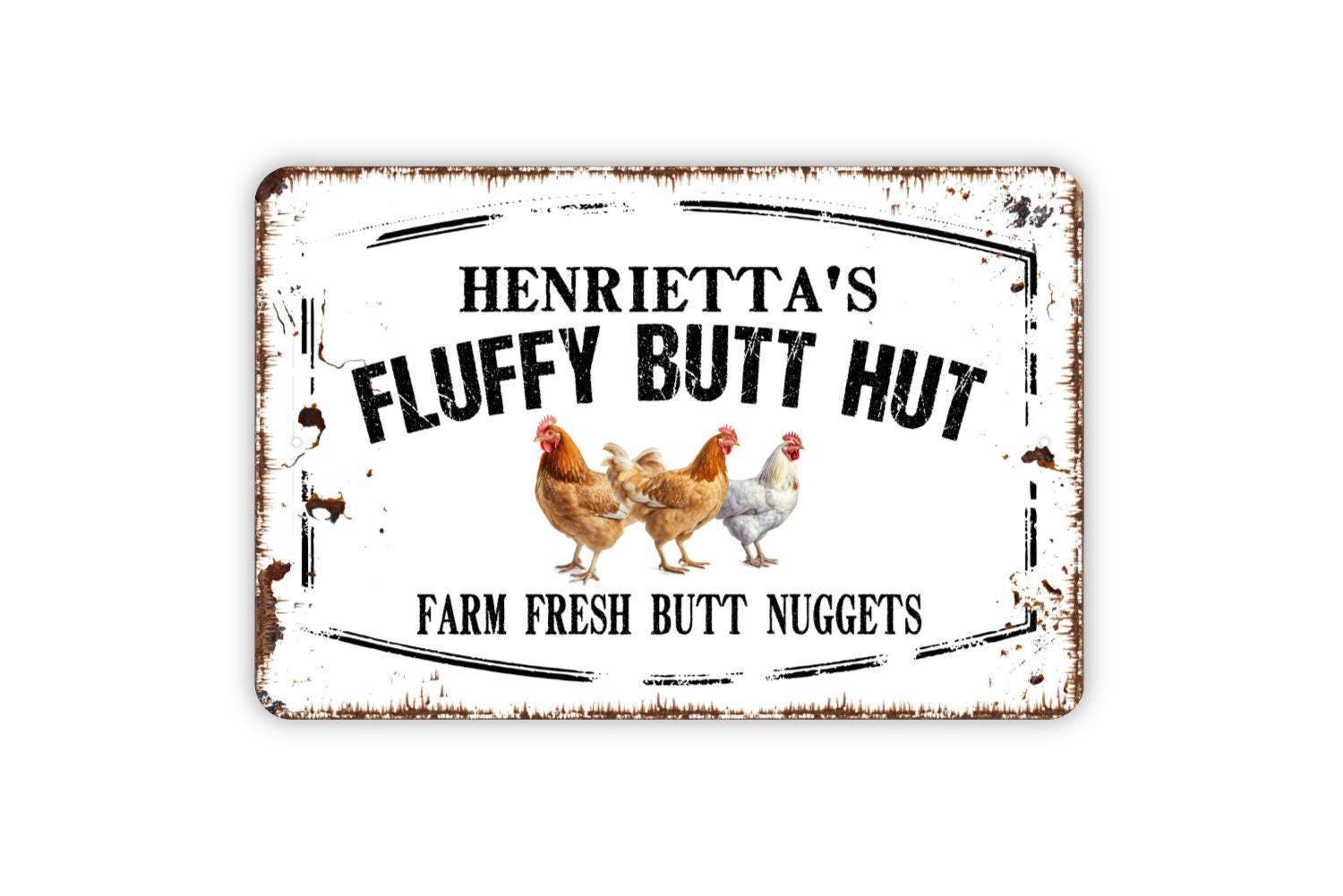Personalized Fluffy Butt Hut Sign | Custom Chicken Coop Farm Decor | Metal Sign or Vinyl Sticker for Barn Yard Farmhouse Gift