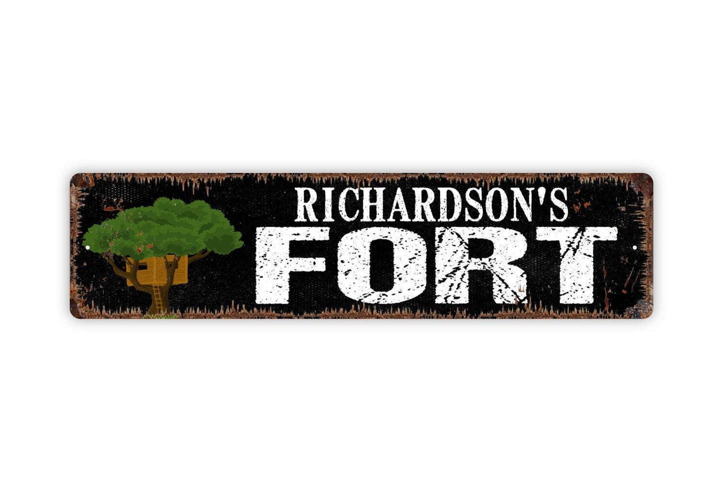 Personalized Fort With Tree Sign – Custom Kids Playhouse Sign – Outdoor Tree Fort Yard Decor – Children’s Playroom Metal Sign or Sticker