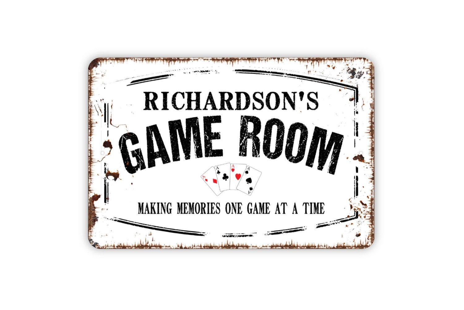 Personalized Game Room Sign Making Memories One Game At A Time | Custom Rustic Family Room or Man Cave Wall Sign | Metal or Vinyl Sticker