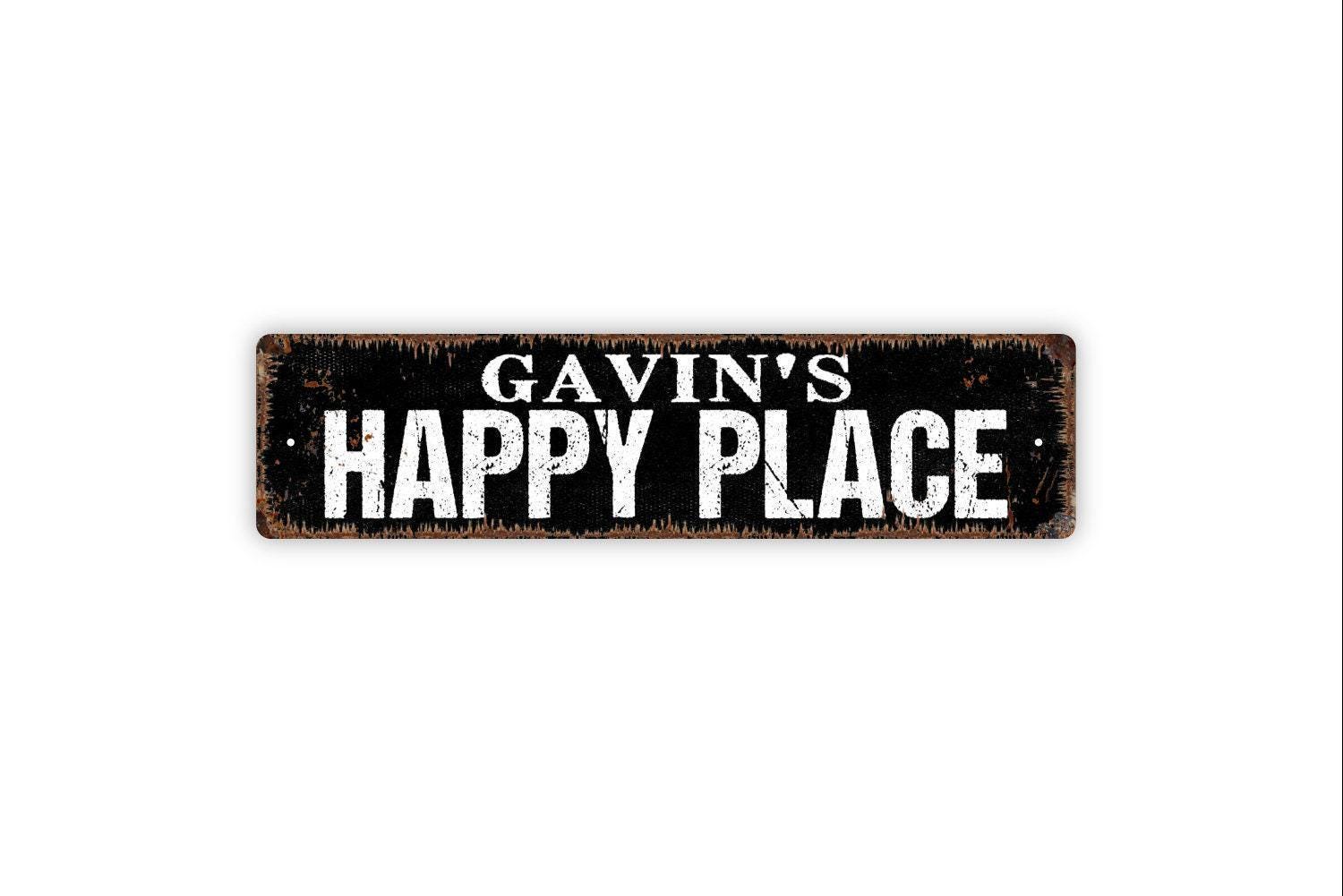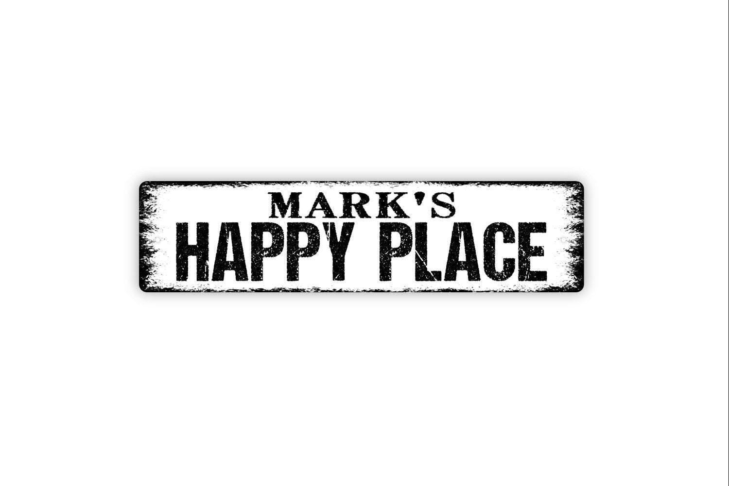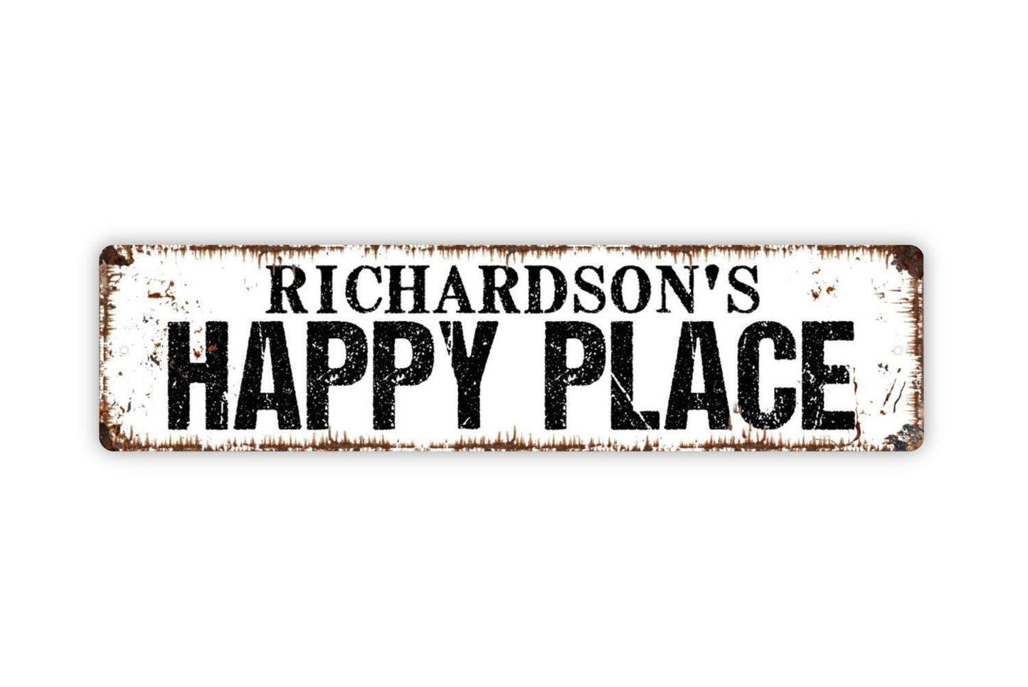 Personalized Happy Place Sign | Custom Family Name Wall Decor | Rustic Farmhouse Cabin Lake House Bar Sign | Metal Sign or Vinyl Sticker
