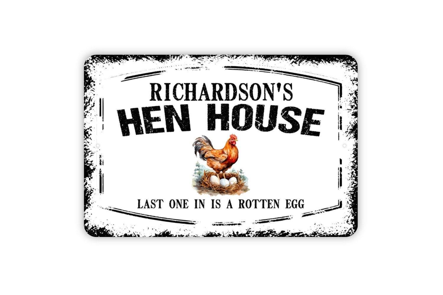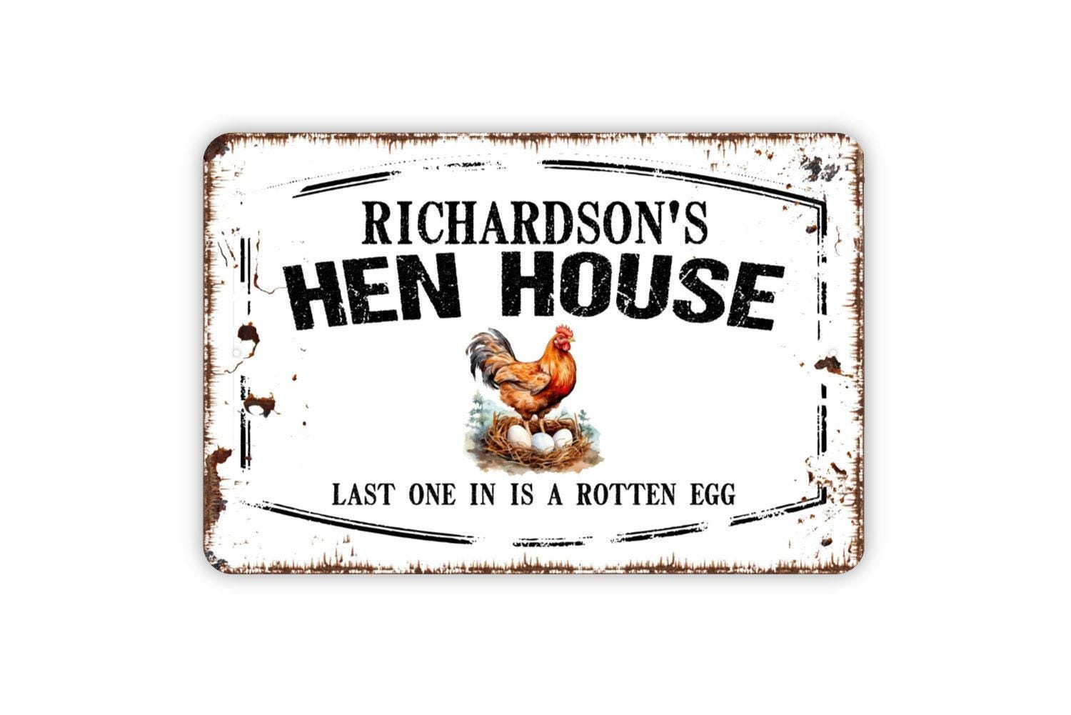 Personalized Hen House Sign - Custom Your Name Last One In Is A Rotten Egg Metal Wall Art Indoor Or Outdoor