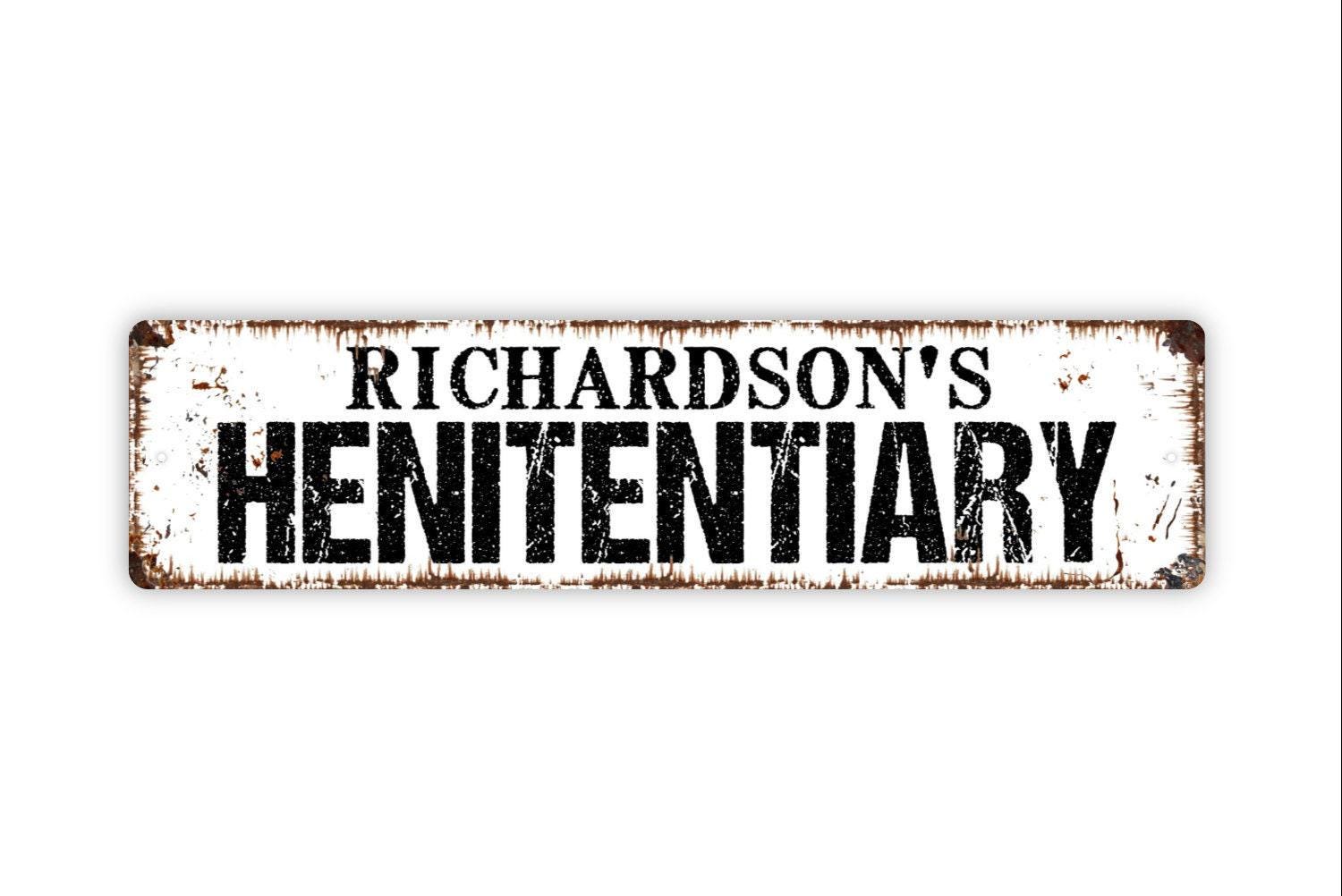 Personalized Henitentiary Sign, Custom Metal Sign, Vinyl Sticker Or Street Sign or Door Name Plate Plaque