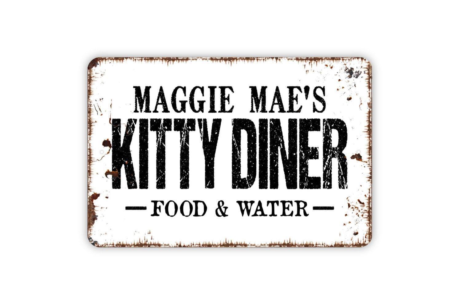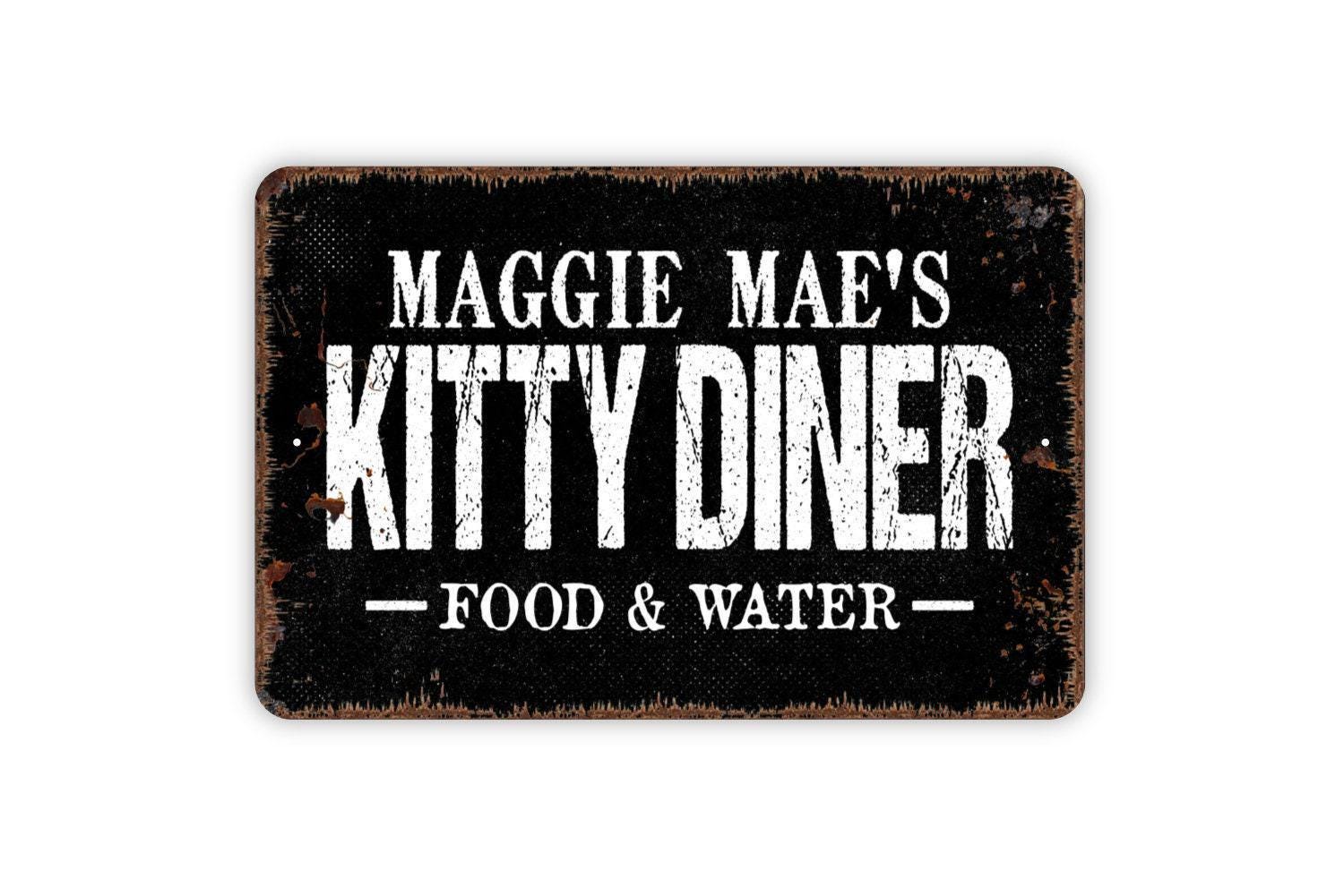 Personalized Kitty Diner Food and Water Sign - Custom Cat Metal Wall Art