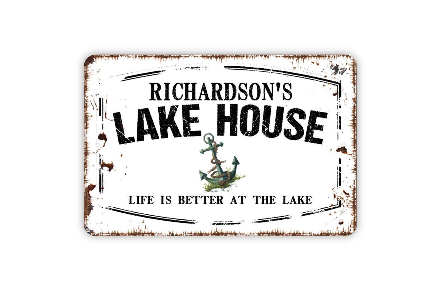 Personalized Lake House Sign | Custom Rustic Farmhouse Wall Sign for Cabin, Dock, or Vacation Home | Metal Sign or Vinyl Sticker Lake Décor