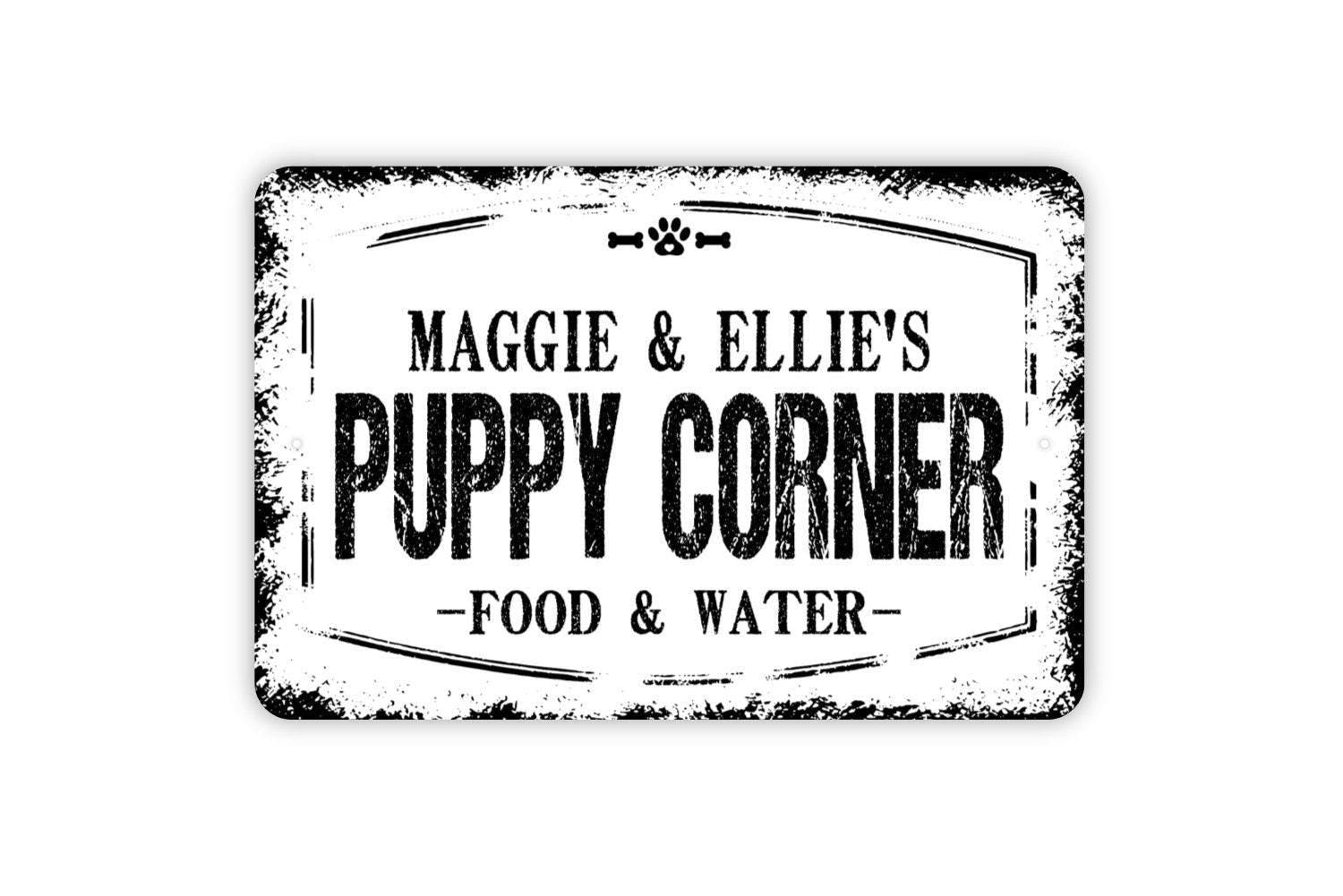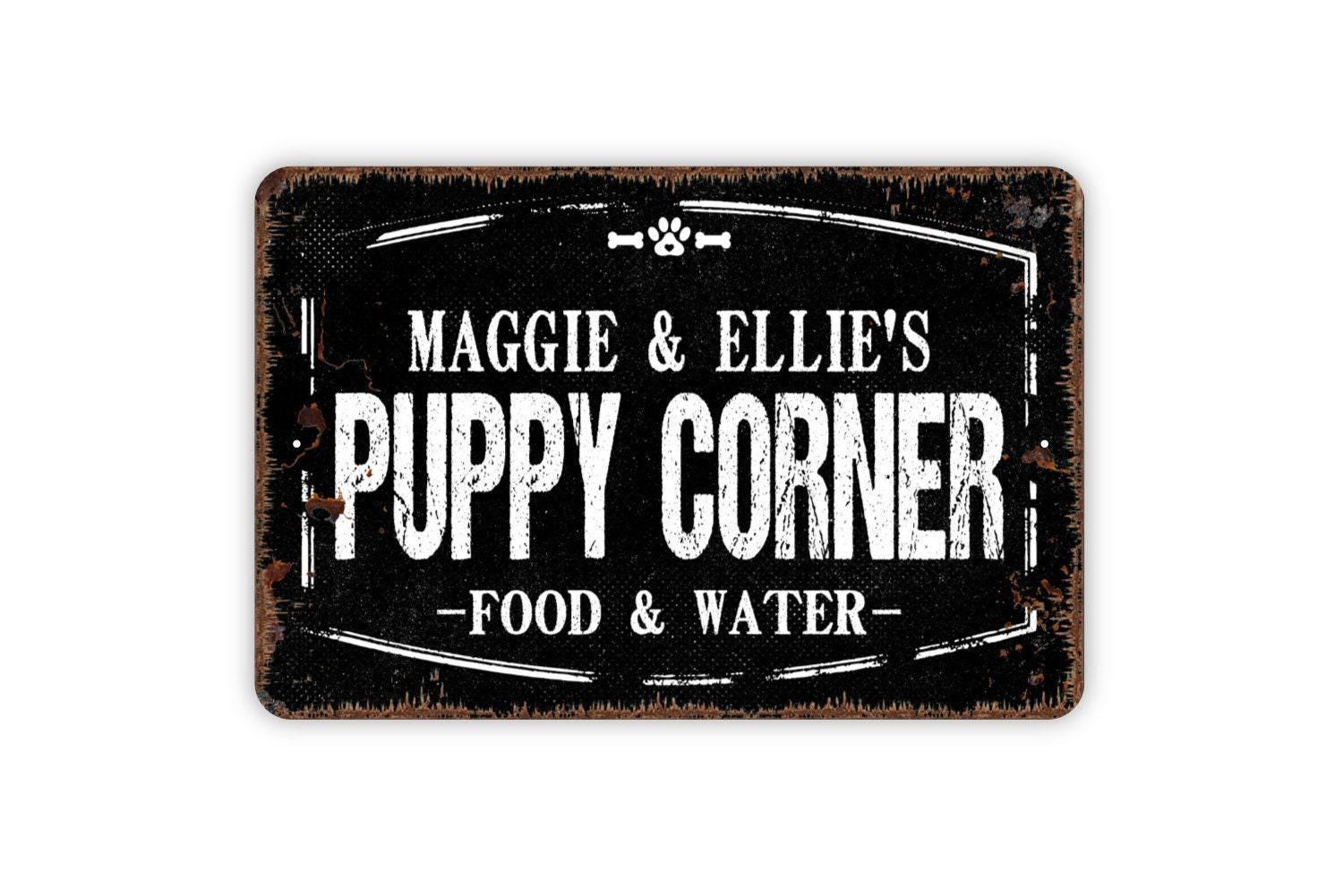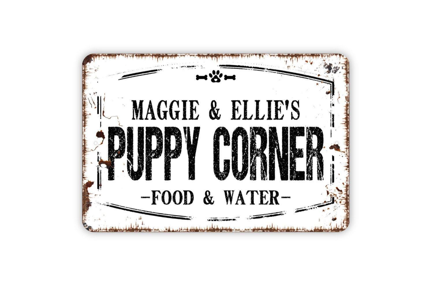 Personalized Puppy Corner Food And Water Sign - Custom Pet Name Dog Food Water Bowl Metal Wall Art Indoor Or Outdoor