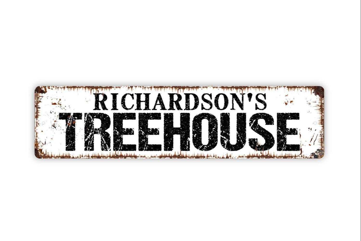 Personalized Treehouse Sign, Custom Metal Sign, Vinyl Sticker Or Street Sign or Door Name Plate Plaque